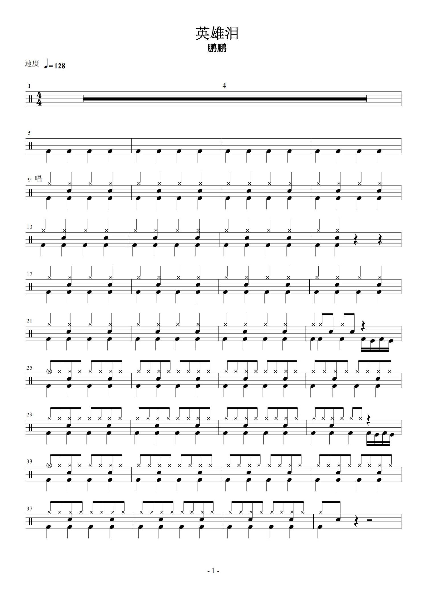 • 英雄泪鼓谱 - 鹏鹏 - 架子鼓谱第1张