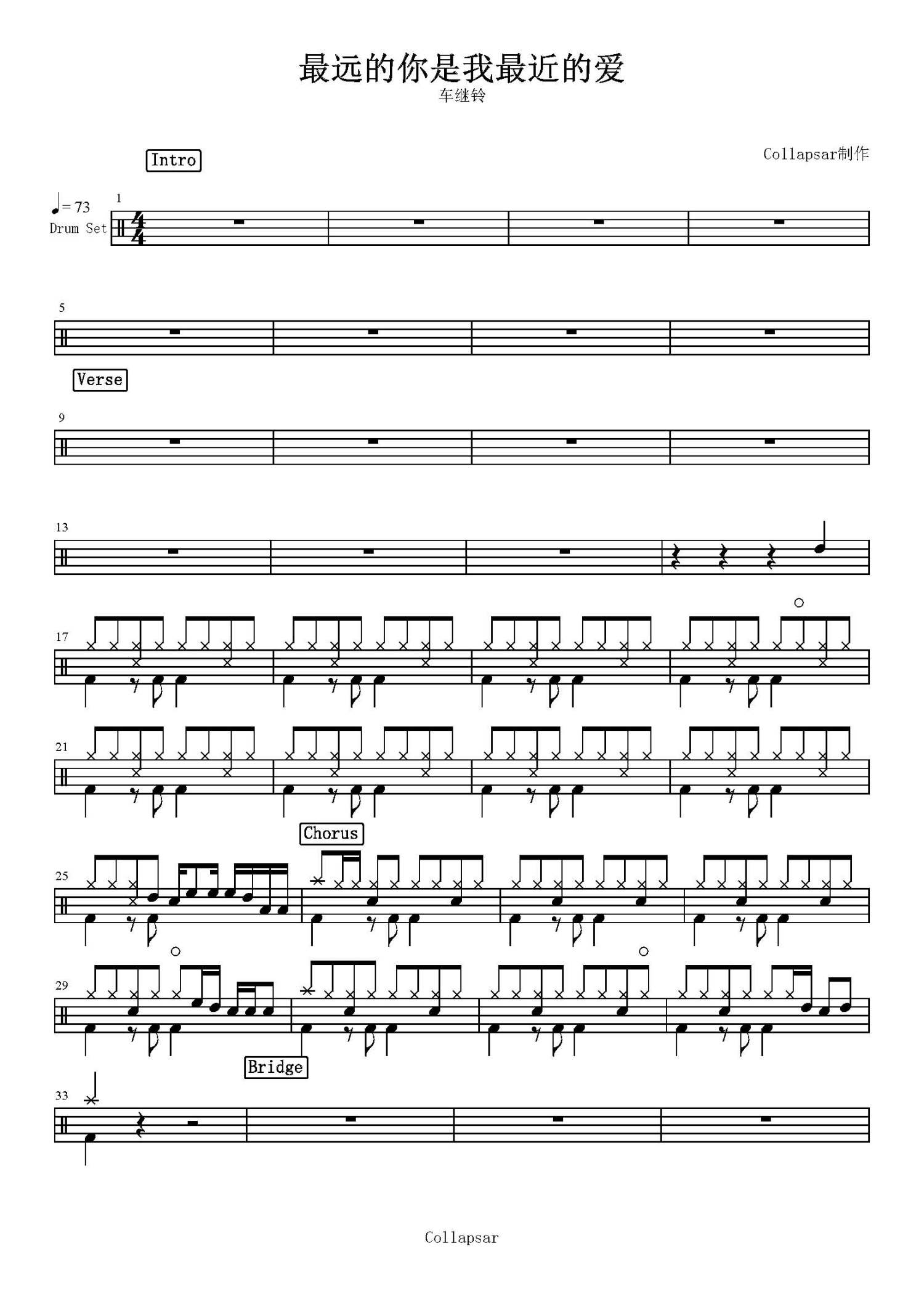 • 最远的你是我最近的爱鼓谱 - 车继铃 - 架子鼓谱第1张