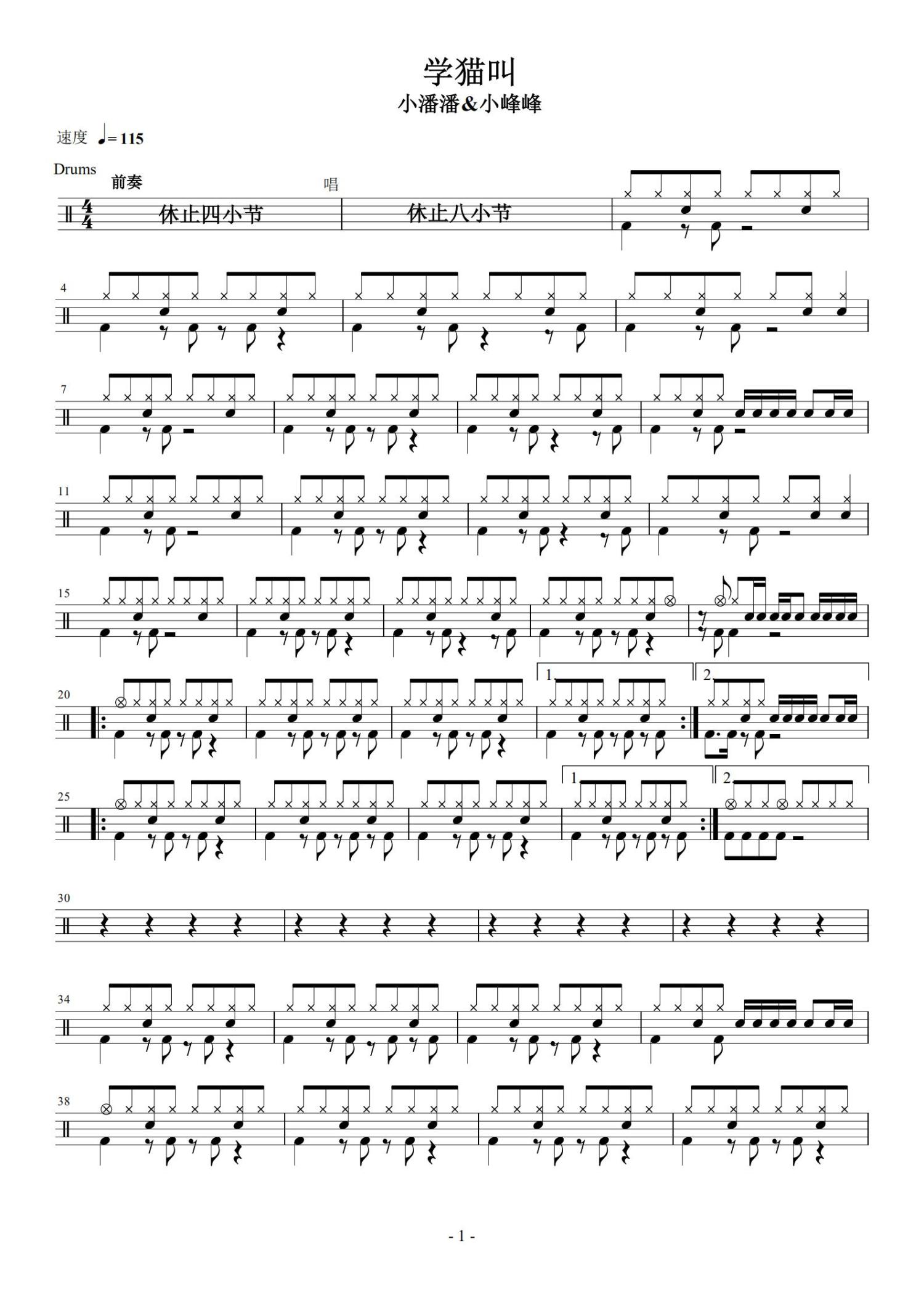 • 学猫叫鼓谱 - 小潘潘/小峰峰 - 架子鼓谱第1张