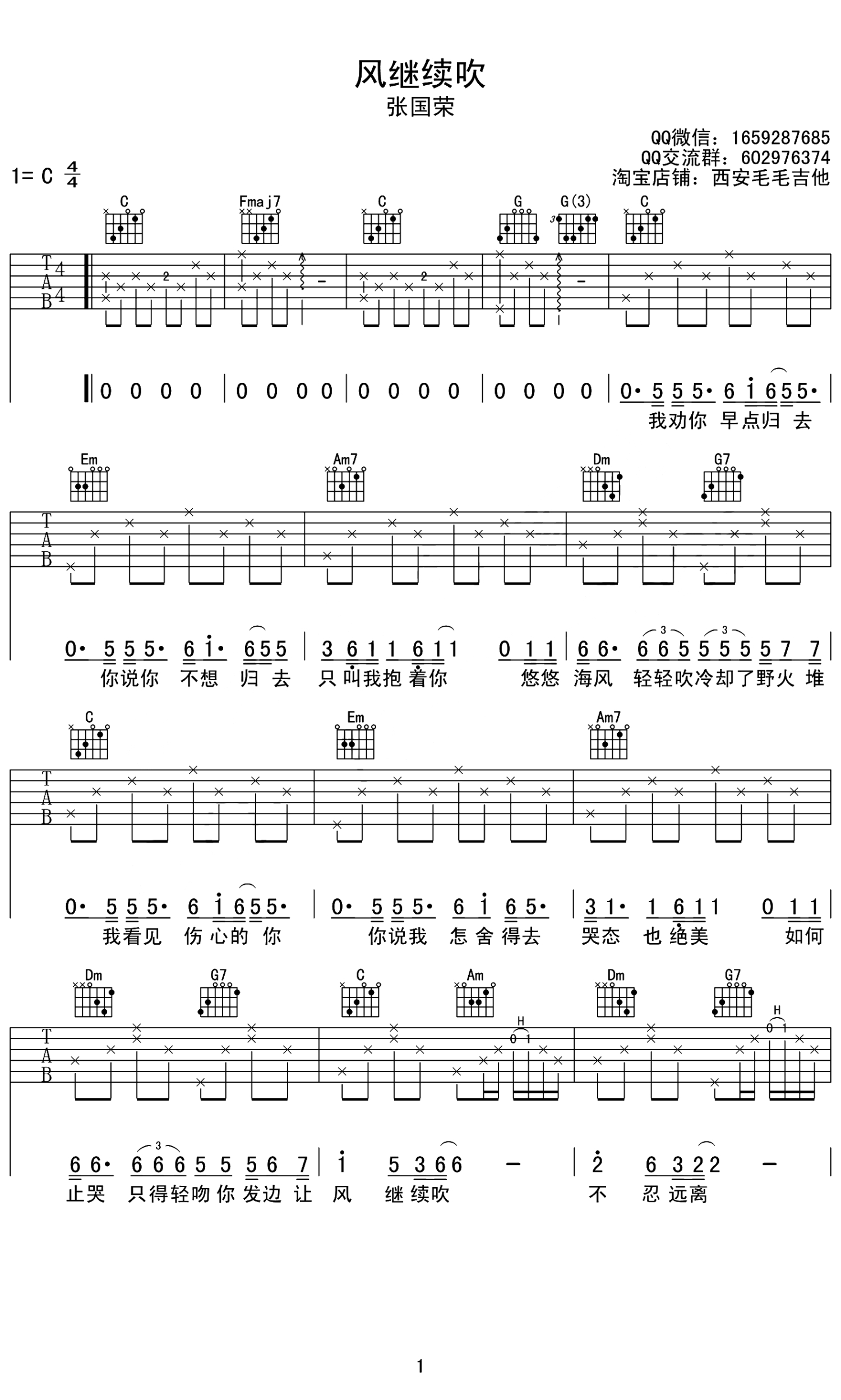 琴谱网为您精心推荐 风继续吹 高清图谱