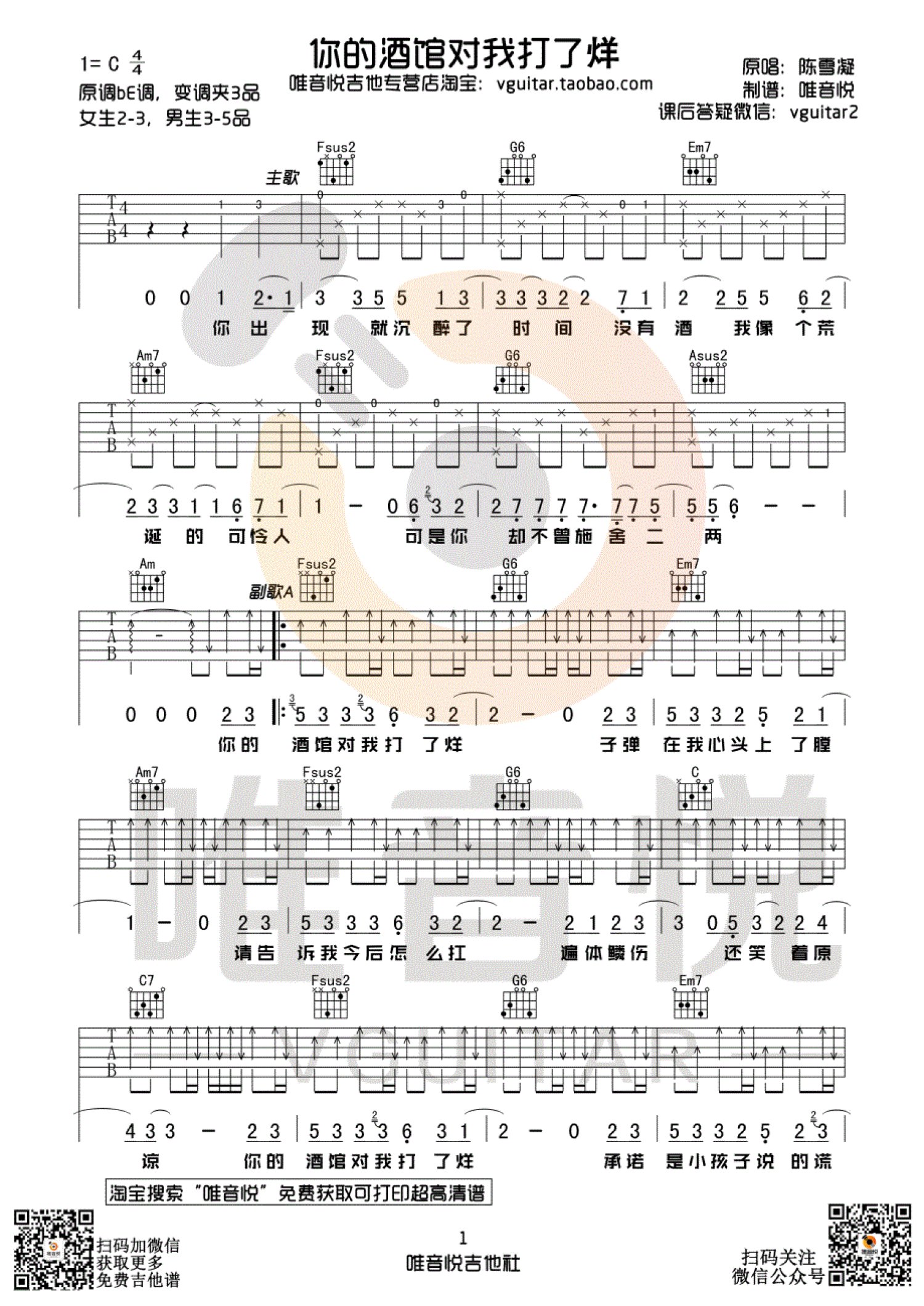 吉他弹唱C调来源:唯音悦914 浏览2019-05-09 22:23发布图谱共3页