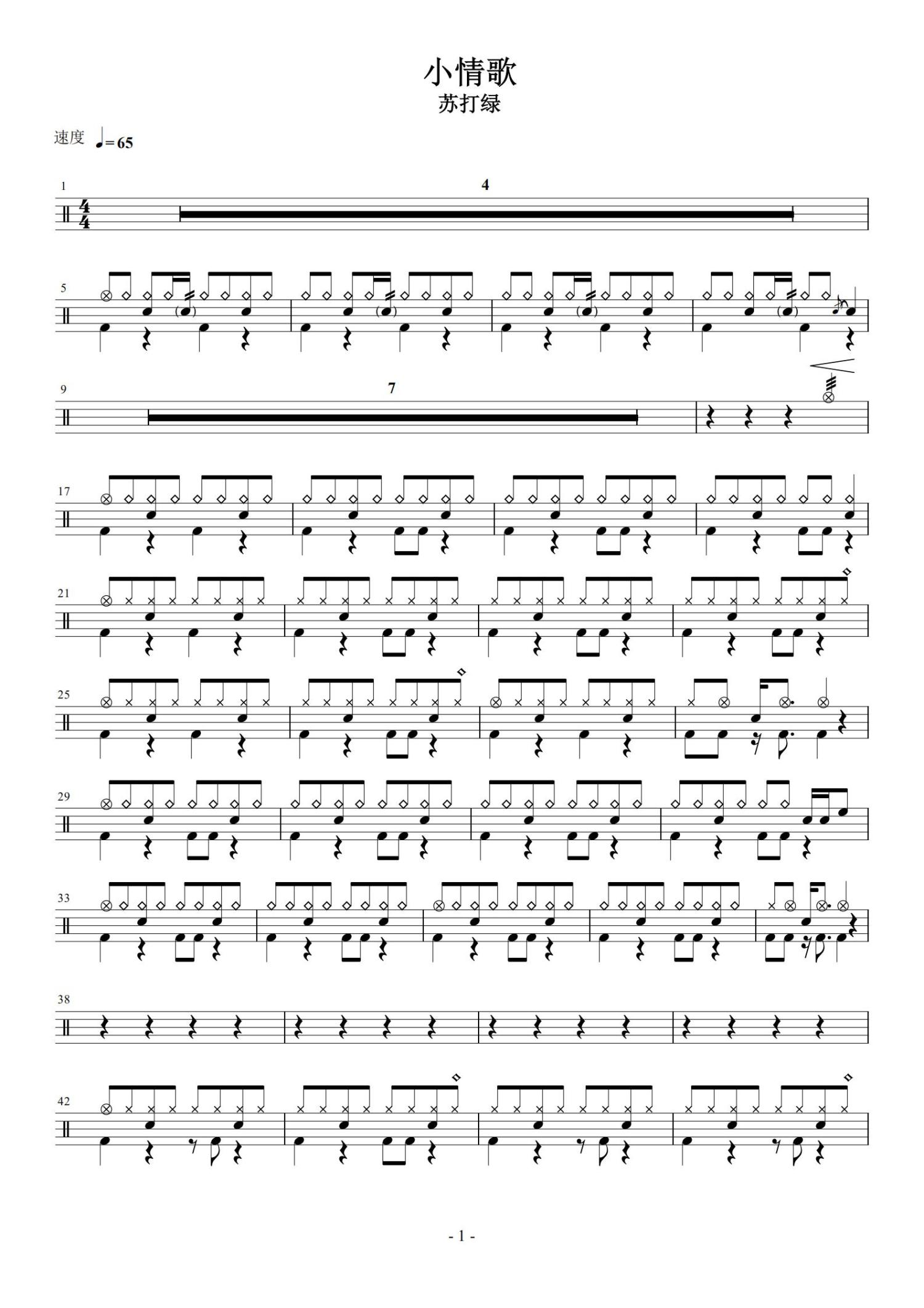 • 小情歌鼓谱 - 苏打绿 - 架子鼓谱第1张