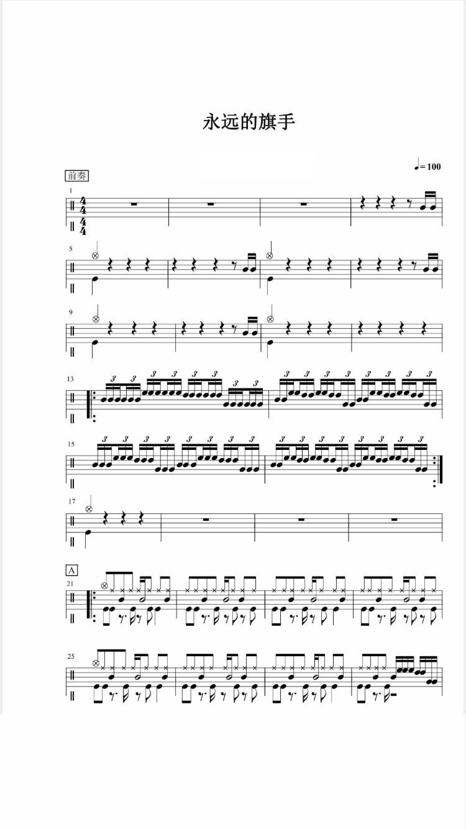 • 永远的旗手鼓谱 - 架子鼓谱第1张