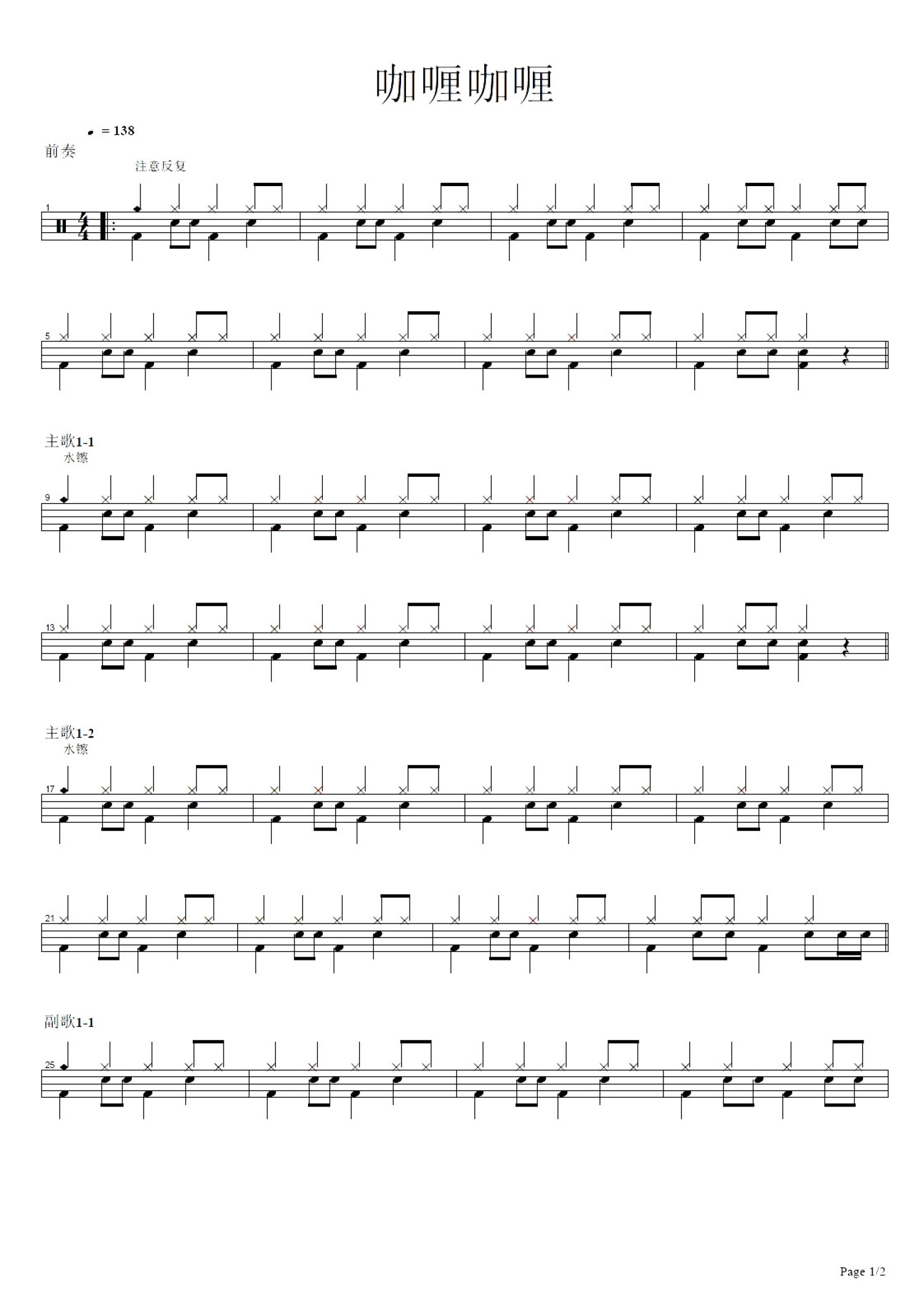当前位置:琴谱网>架子鼓谱>咖喱咖喱