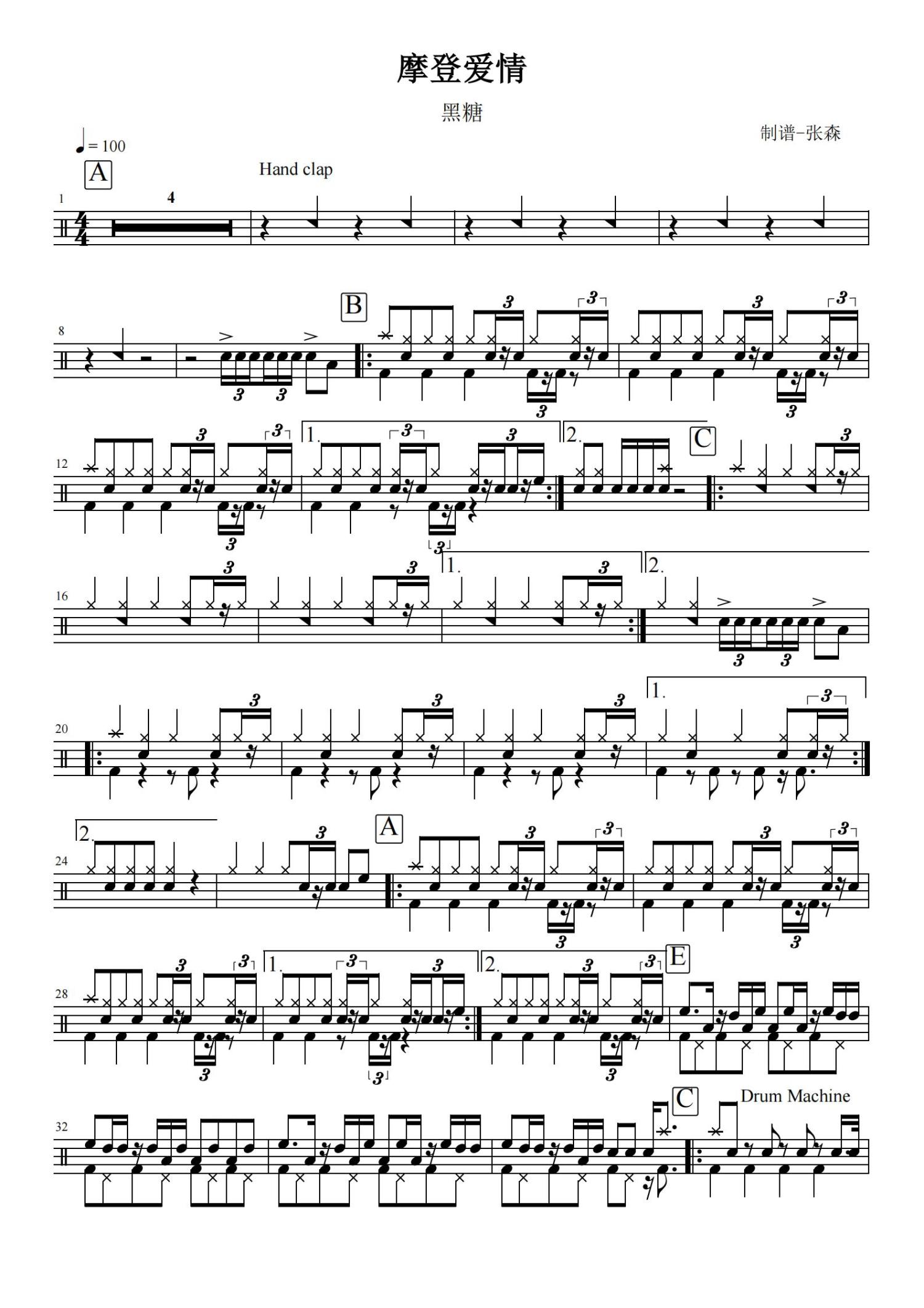 • 摩登爱情鼓谱 - 黑糖 - 架子鼓谱第1张