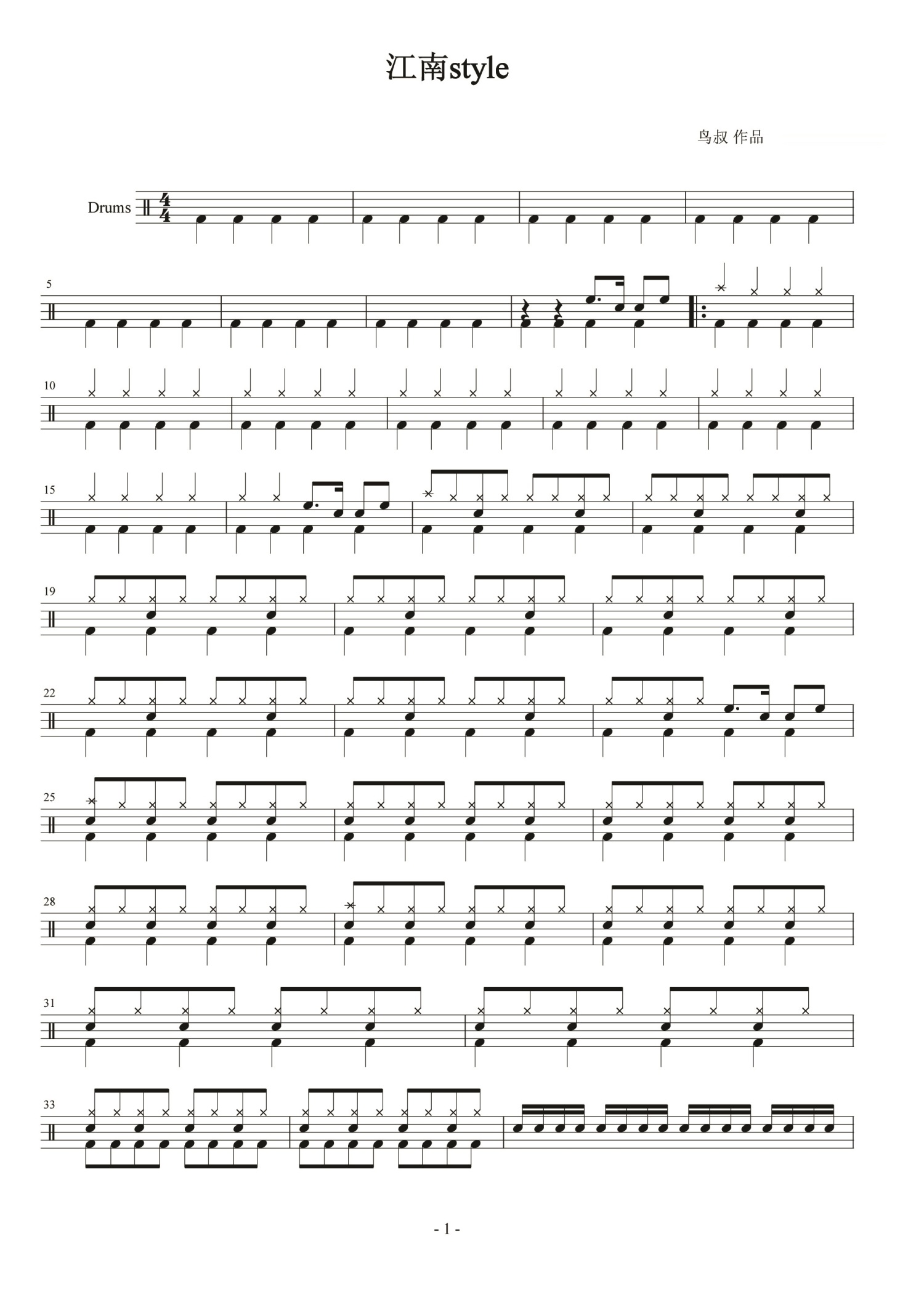 • 江南style鼓谱 - 鸟叔 - 架子鼓谱第1张