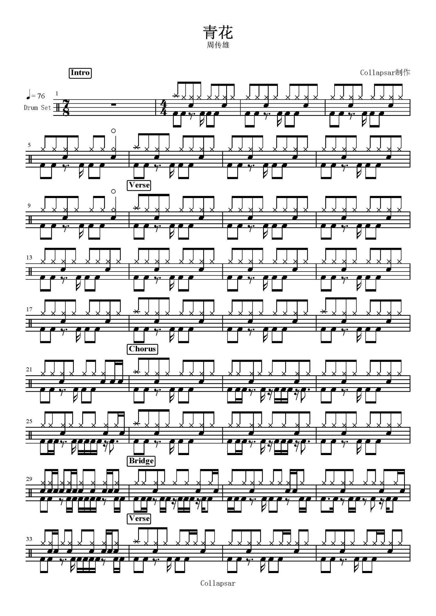 • 青花鼓谱 - 周传雄 - 架子鼓谱第1张
