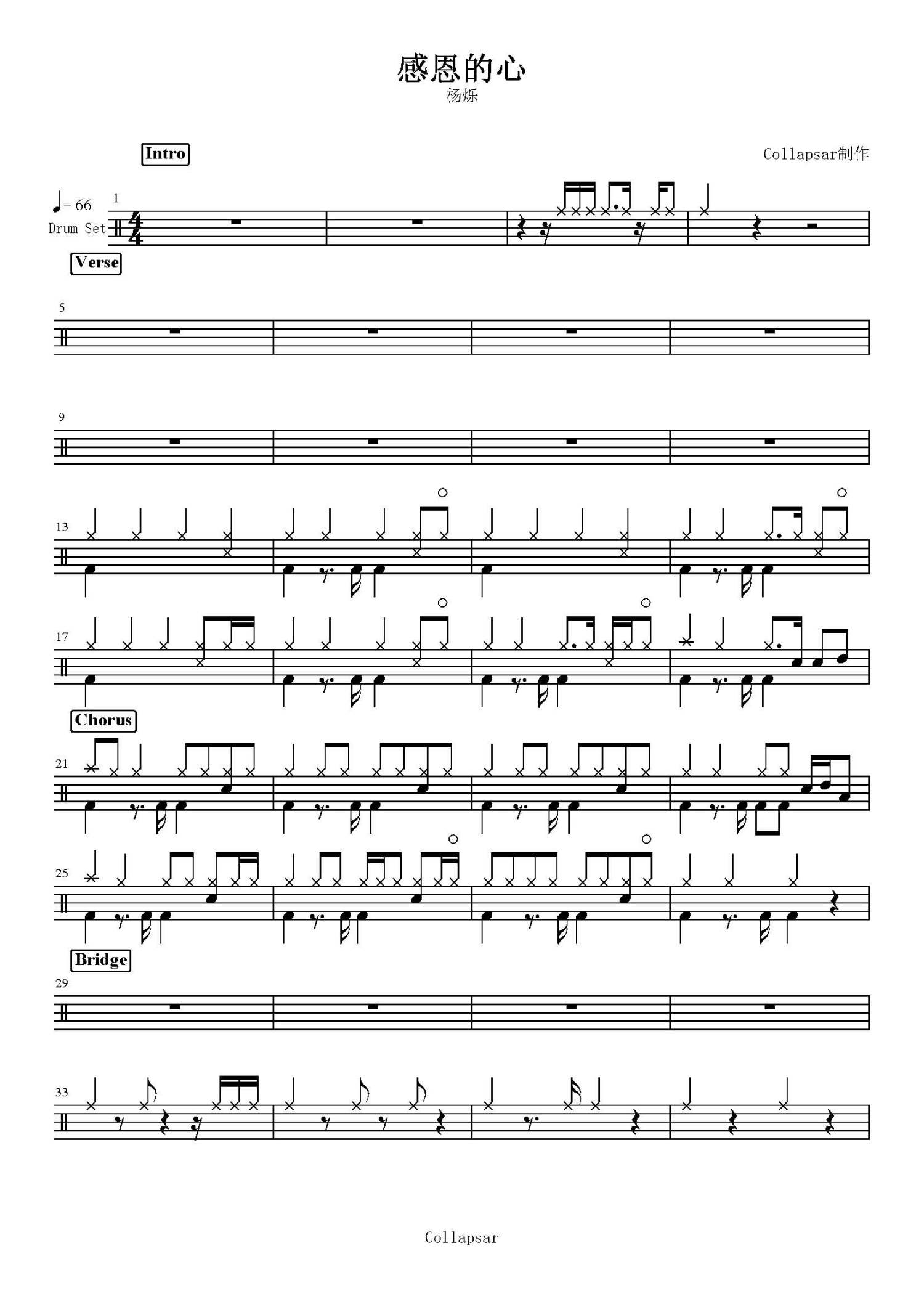 • 感恩的心鼓谱 - 杨烁 - 架子鼓谱第1张