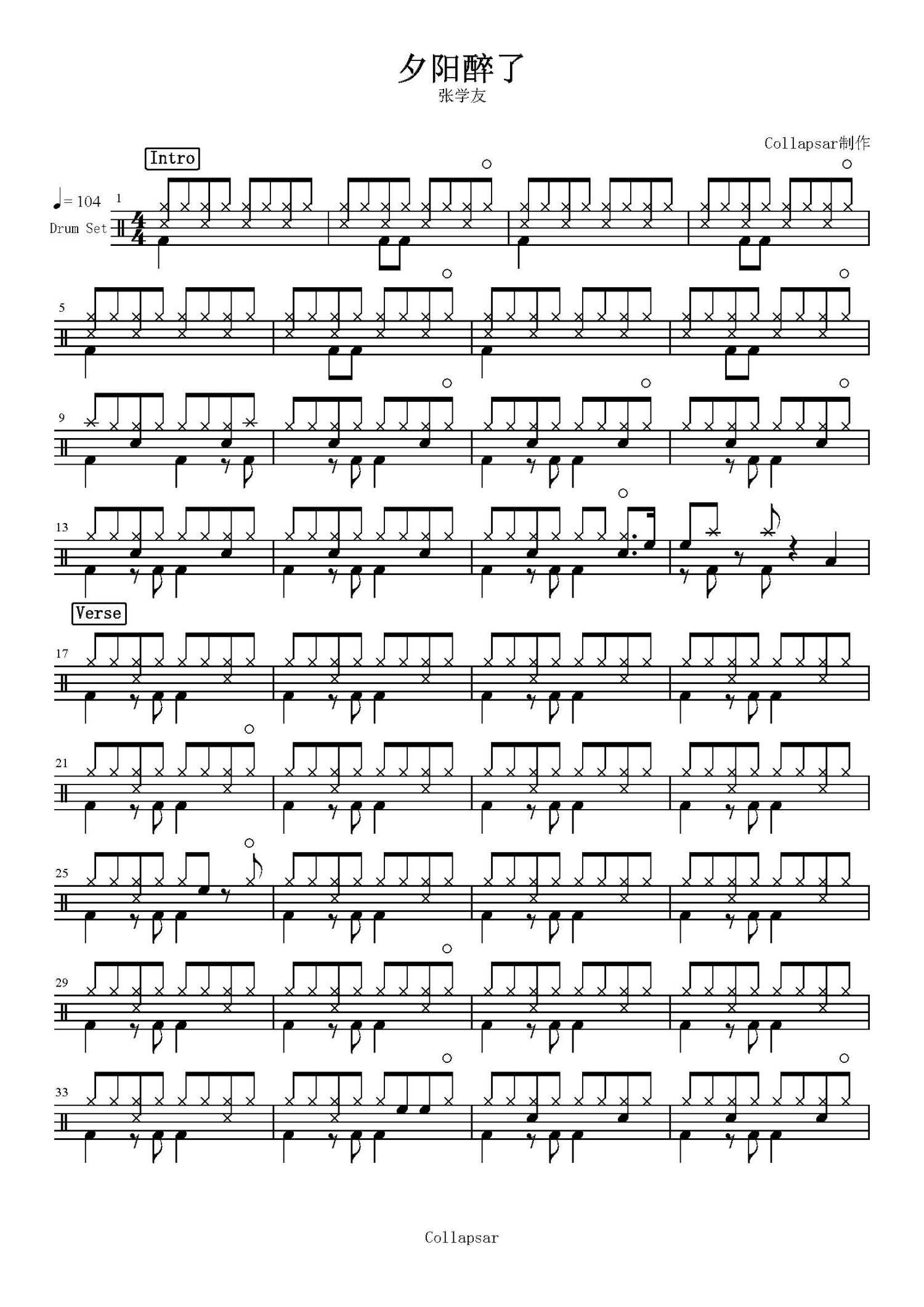 • 夕阳醉了鼓谱 - 张学友 - 架子鼓谱第1张
