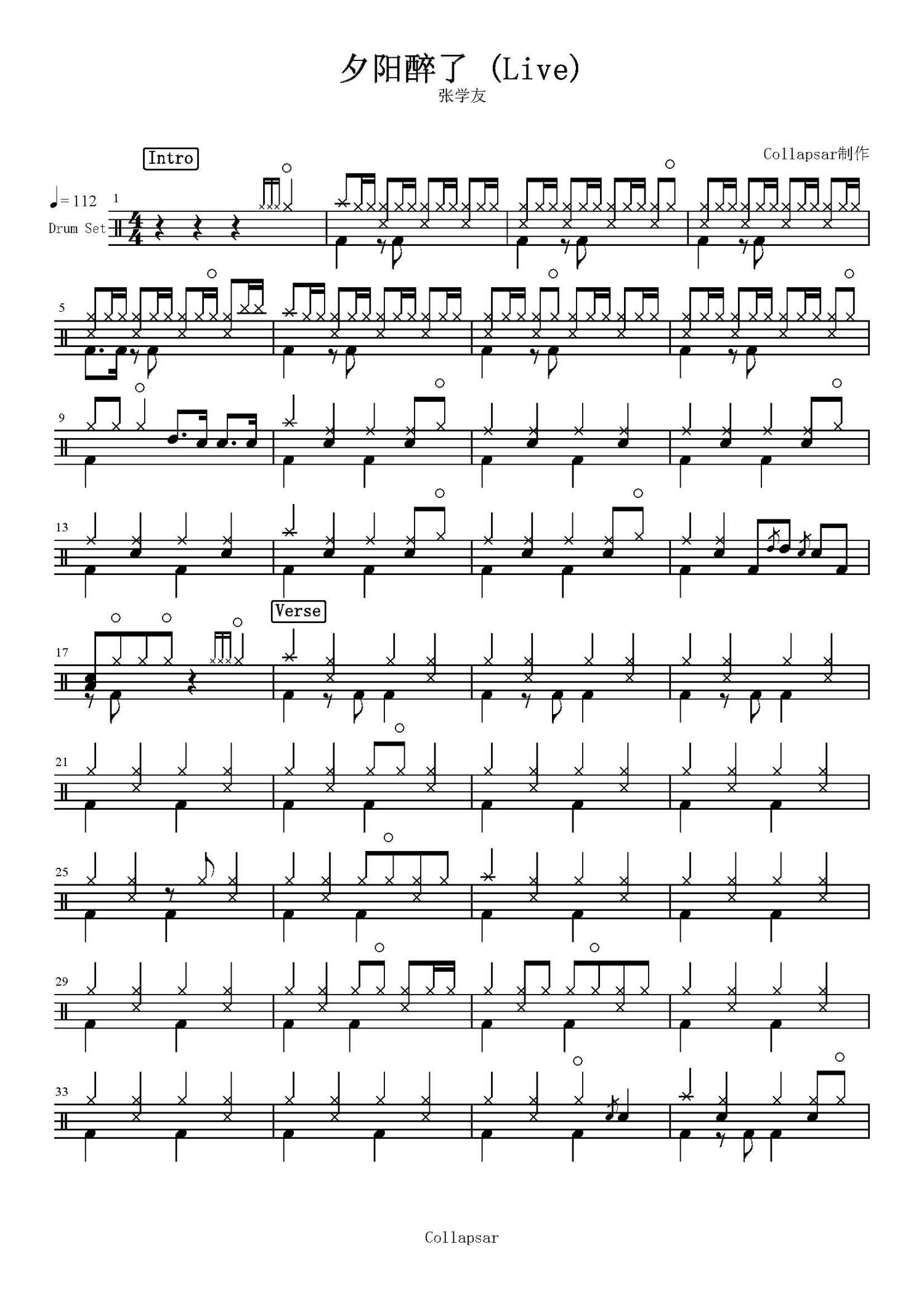 • 夕阳醉了鼓谱 - 张学友 - 架子鼓谱 - Live第1张