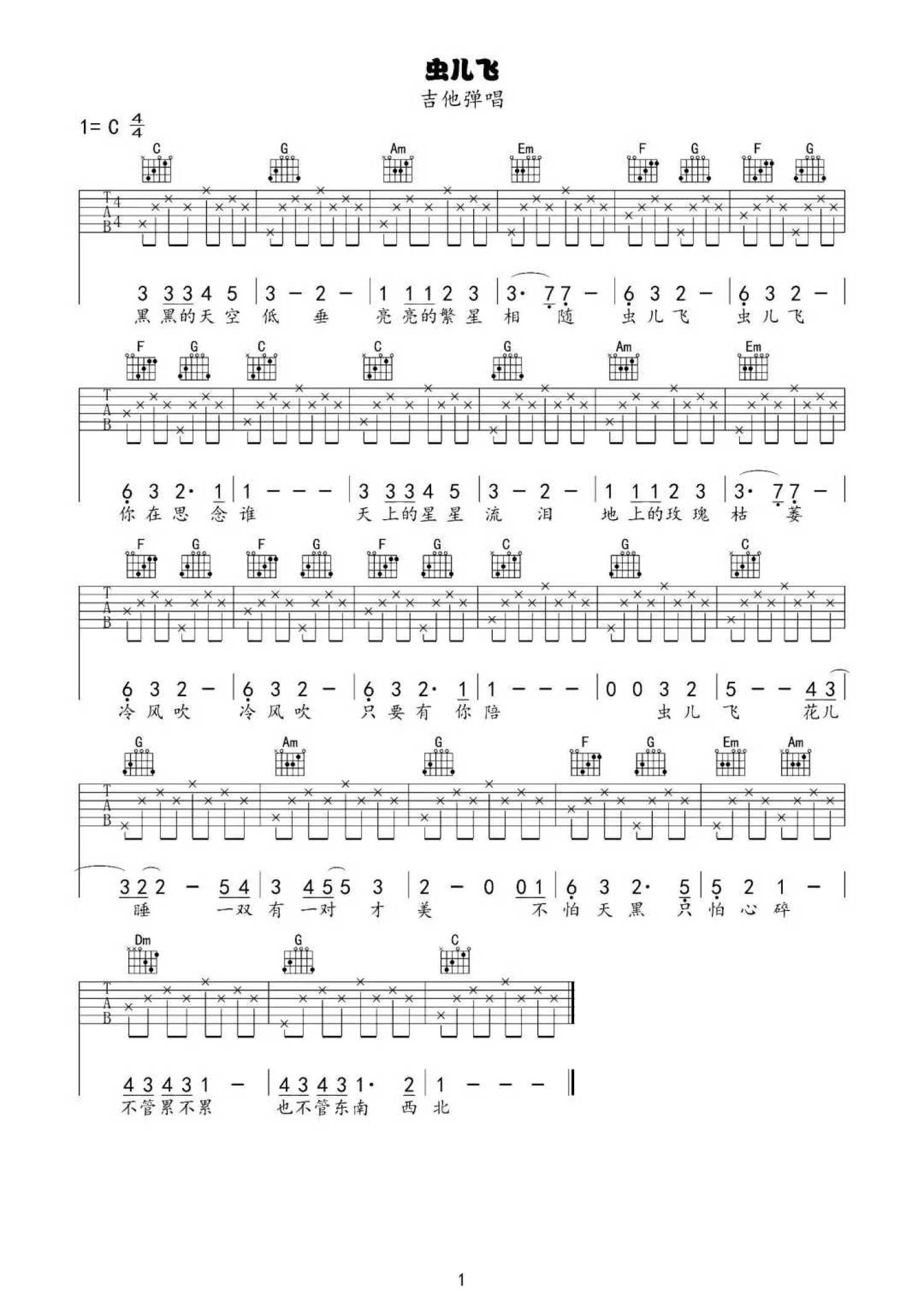 当前位置:琴谱网>吉他弹唱>虫儿飞