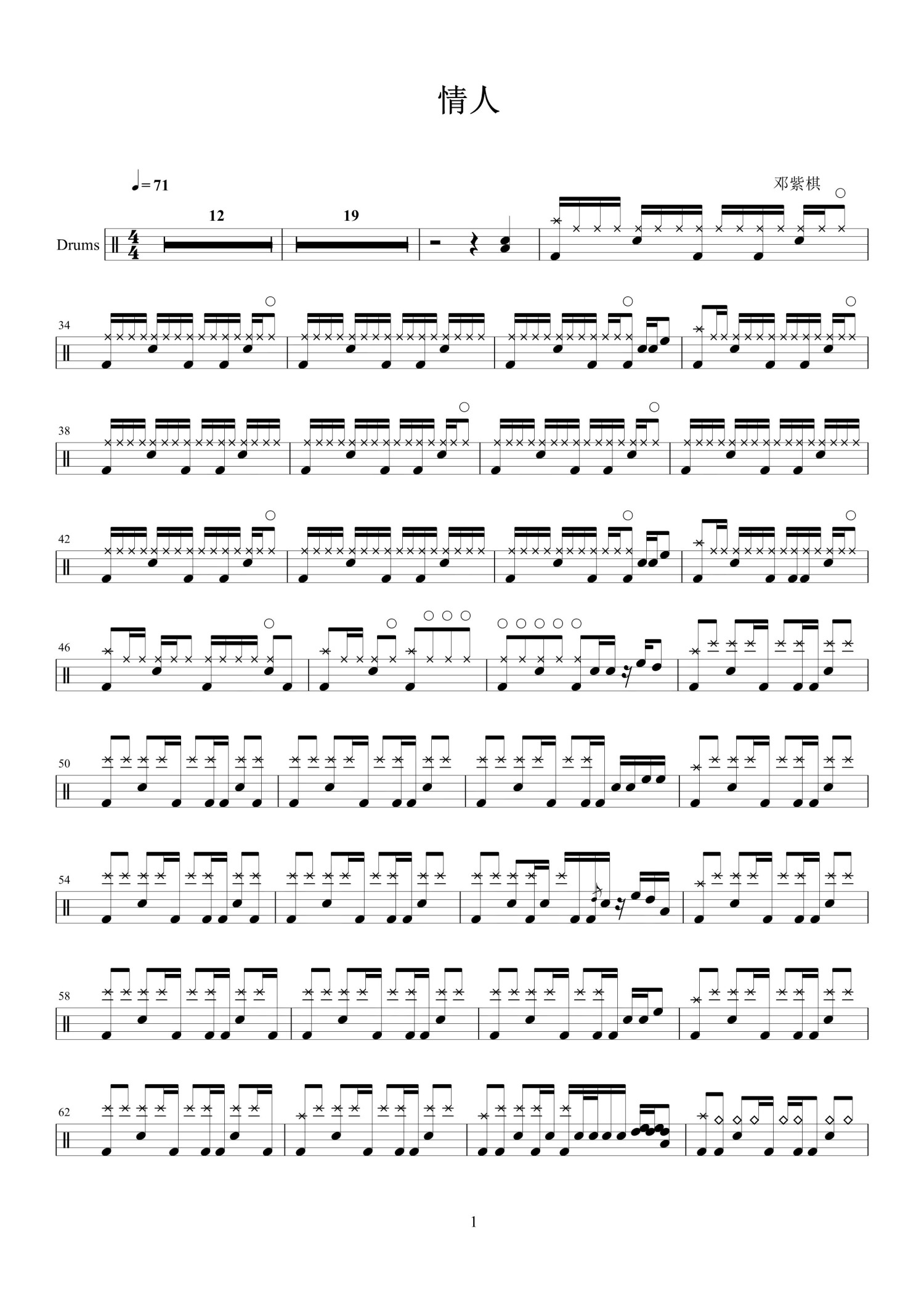 • 情人鼓谱 - 邓紫棋 - 架子鼓谱第1张