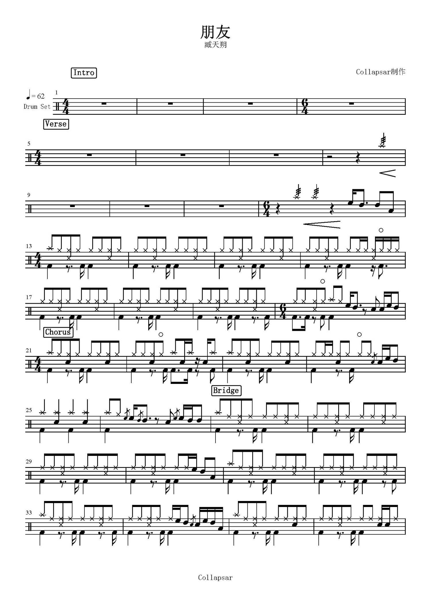 • 朋友鼓谱 - 臧天朔 - 架子鼓谱第1张