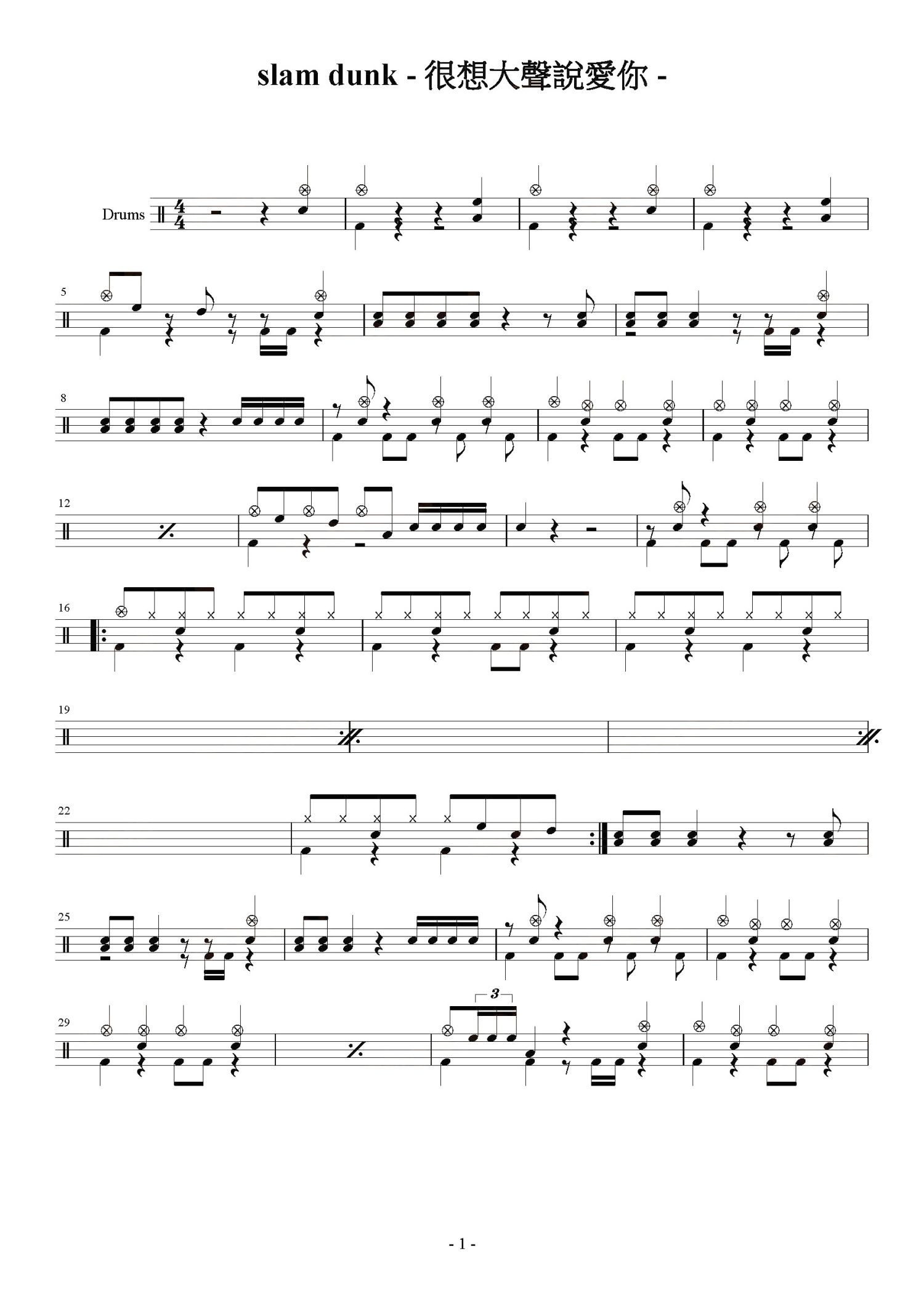 • 好想大声说爱你鼓谱 - slam dunk - 架子鼓谱第1张