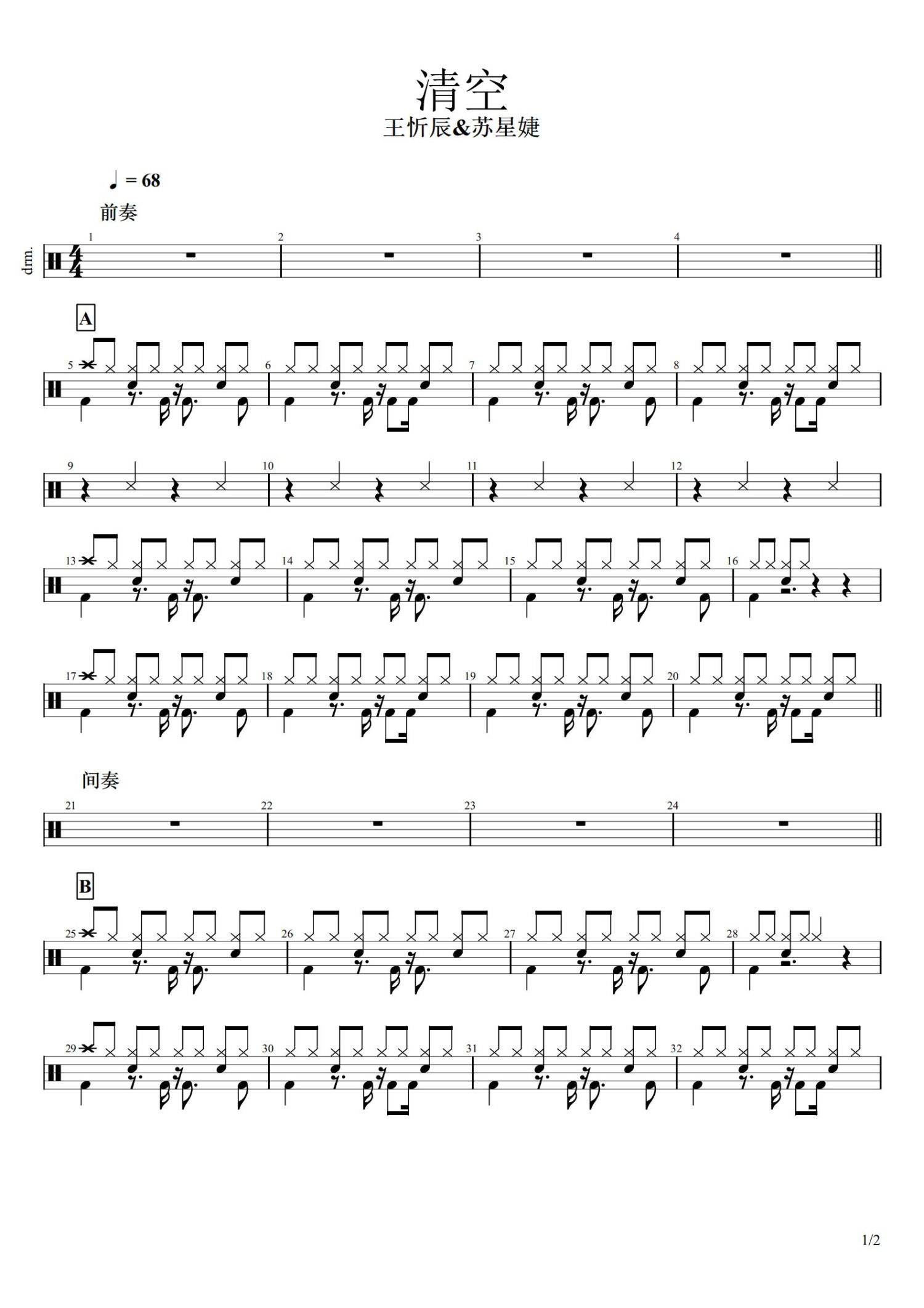 • 清空鼓谱 - 王忻辰 - 架子鼓谱第1张