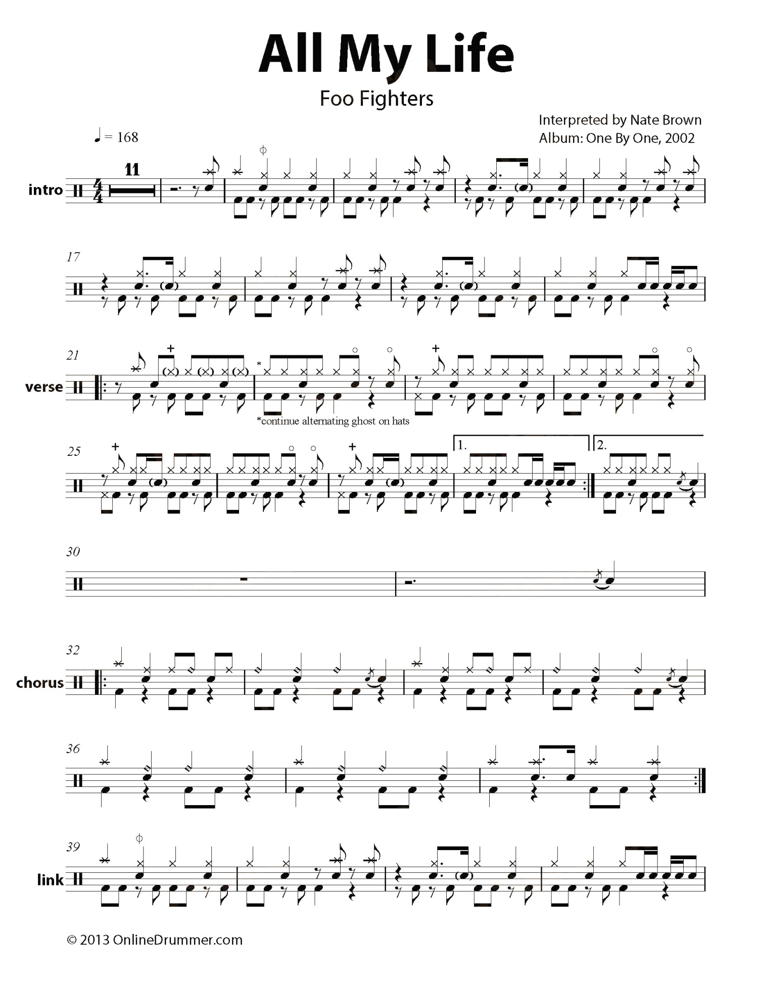 • All My Life鼓谱 - FooFighters - 架子鼓谱第1张