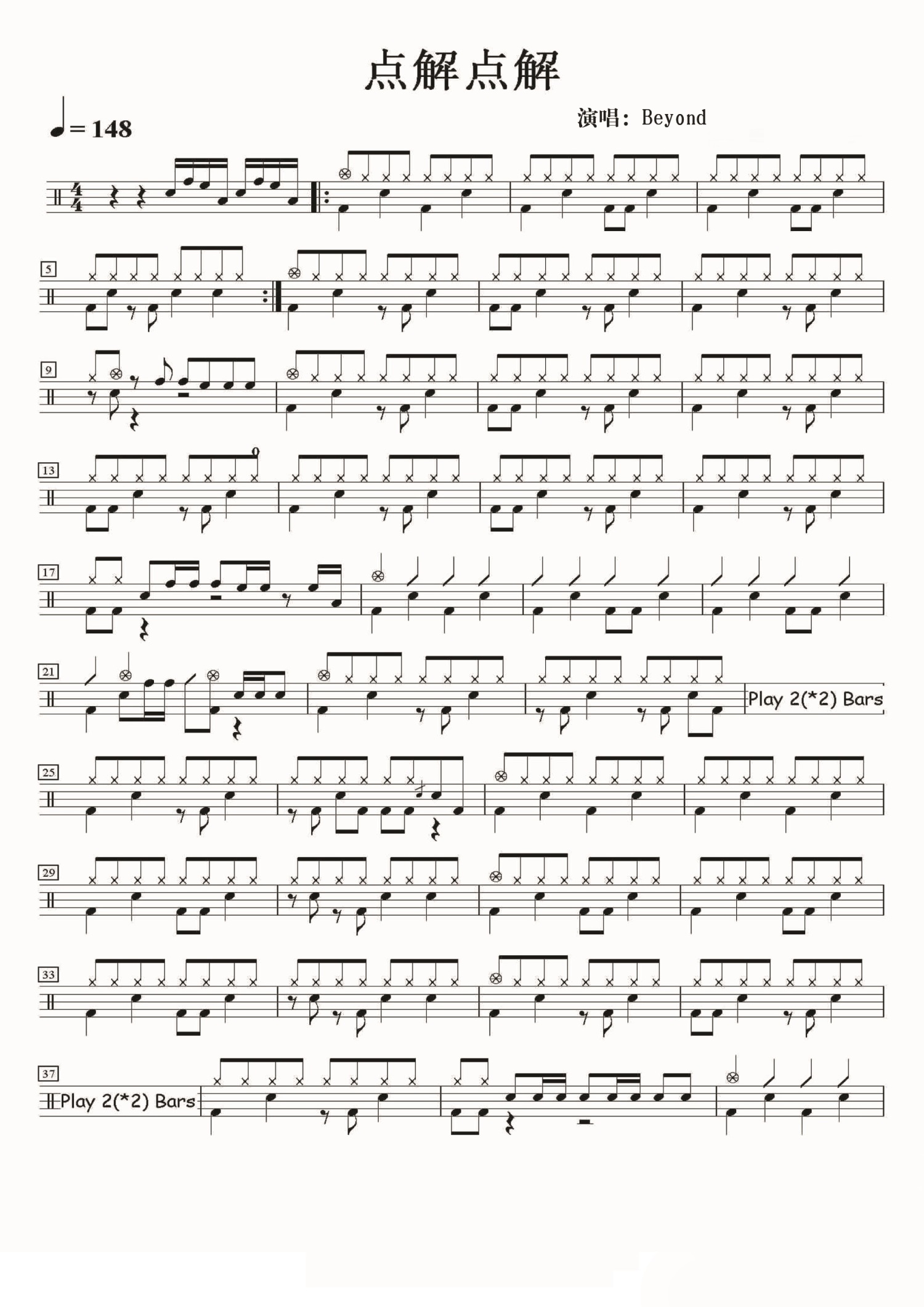 点解点解鼓谱 - beyond - 架子鼓谱