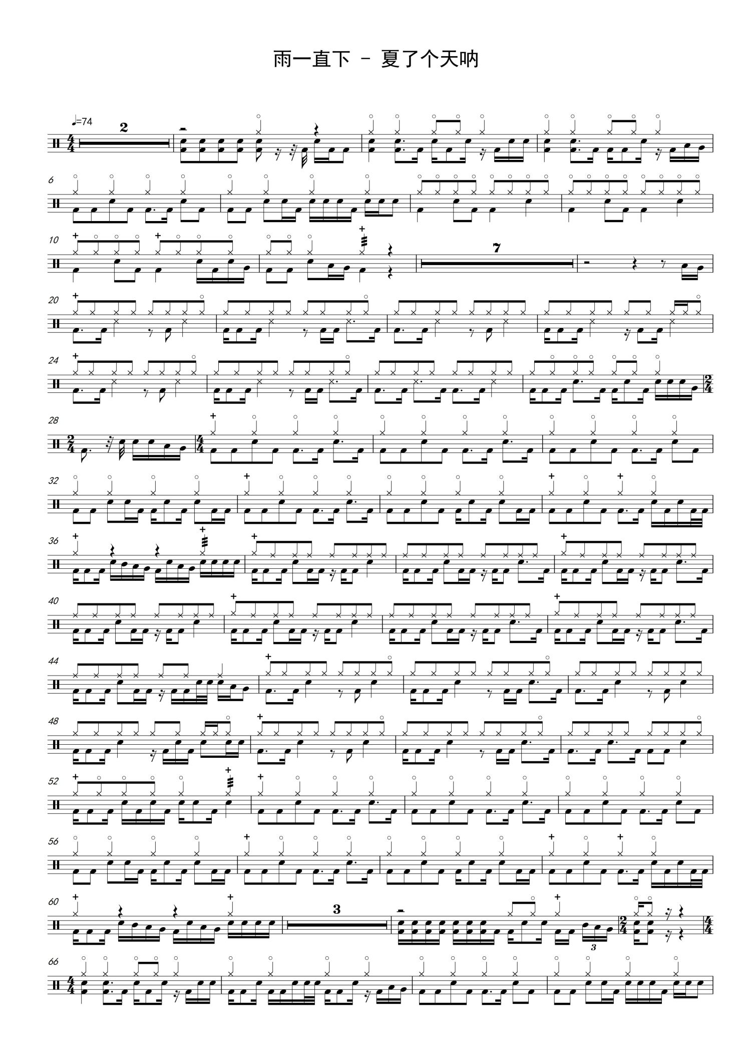 雨一直下鼓谱 - 夏了个天呐 - 架子鼓谱