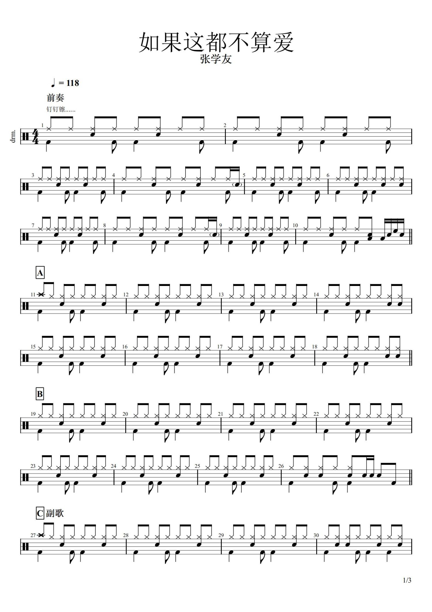 • 如果这都不算爱鼓谱 - 张学友 - 架子鼓谱第1张
