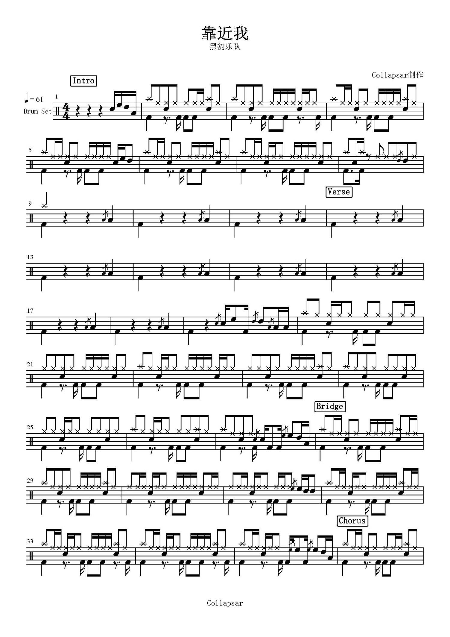 靠近我鼓谱 - 黑豹乐队 - 架子鼓谱