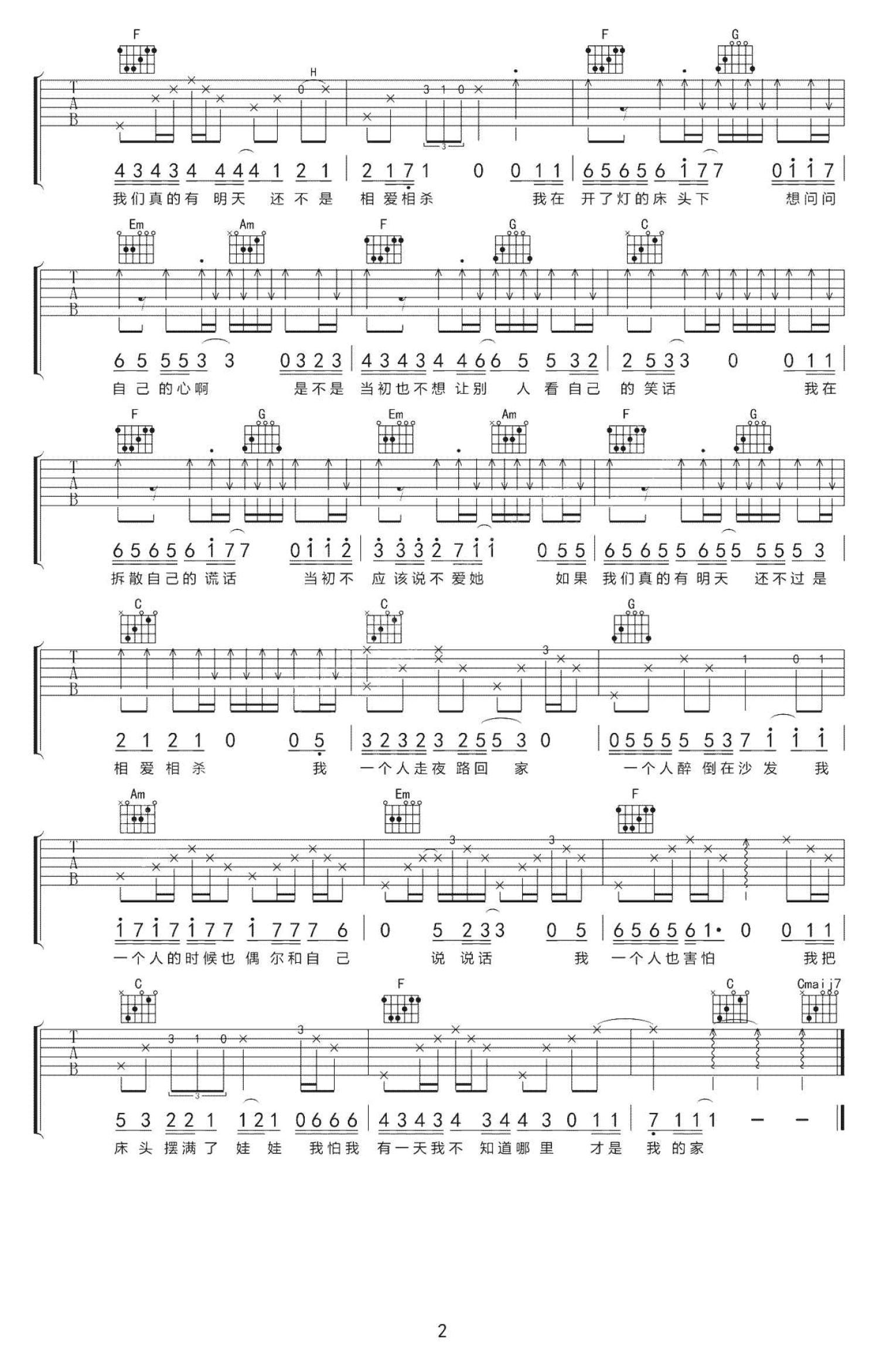 曲谱介绍: 隔壁老樊《关于孤独我想说的话》吉他谱 2页版本
