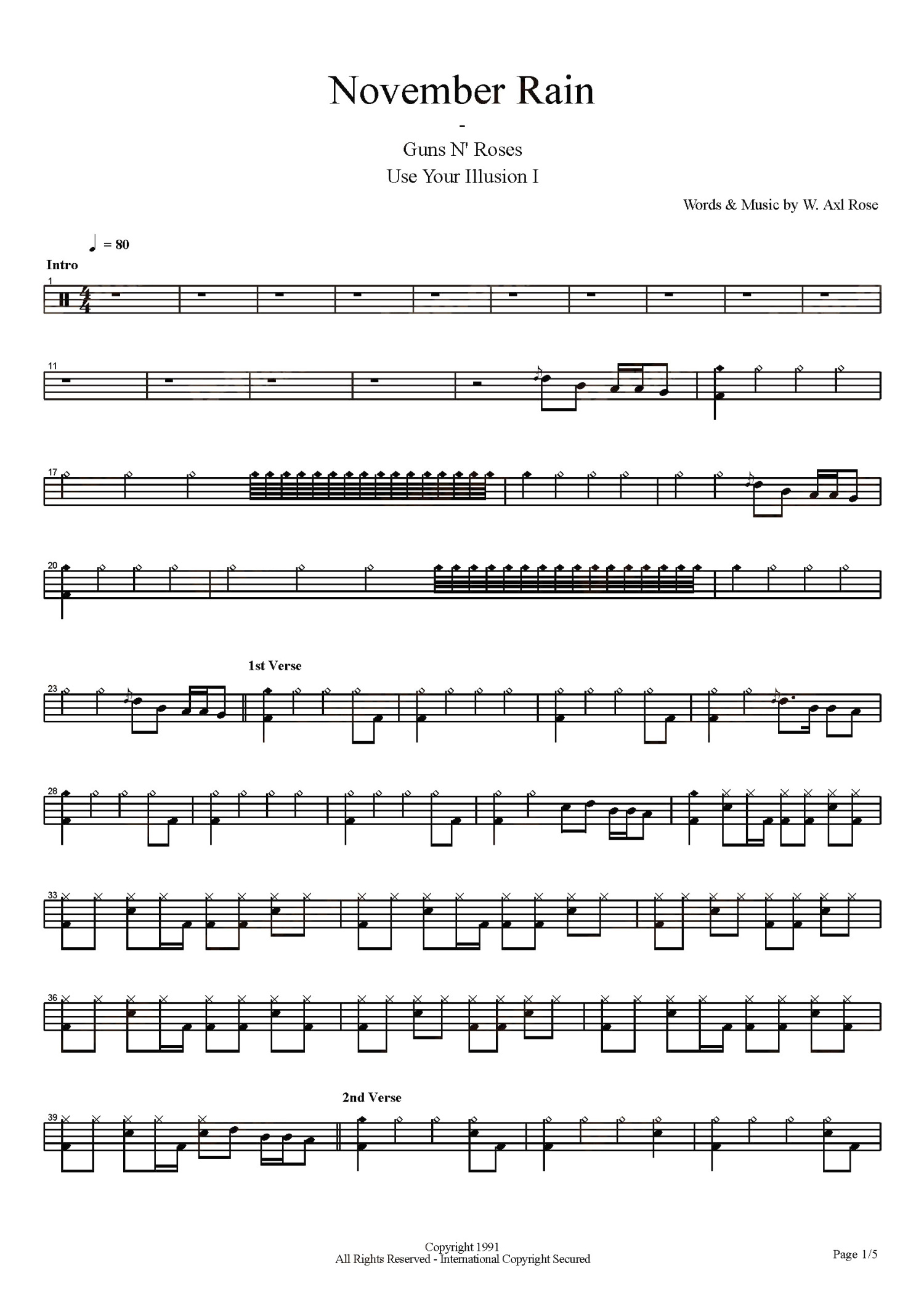 • November Rain鼓谱 - Guns N' Roses - 架子鼓谱第1张