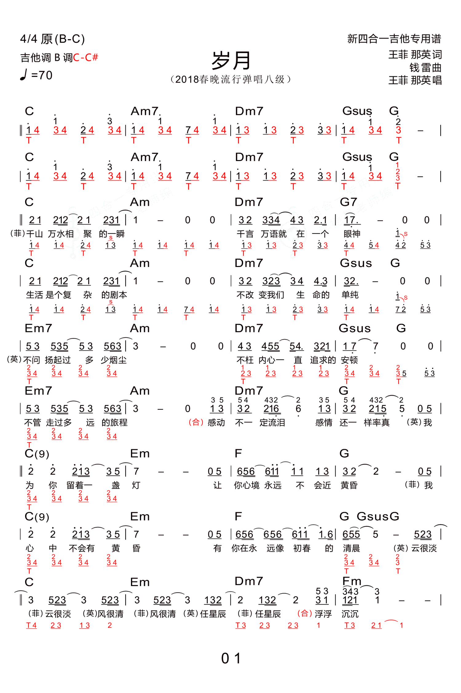岁月吉他谱 - 王菲/那英 - C调吉他弹唱谱 - 和弦版