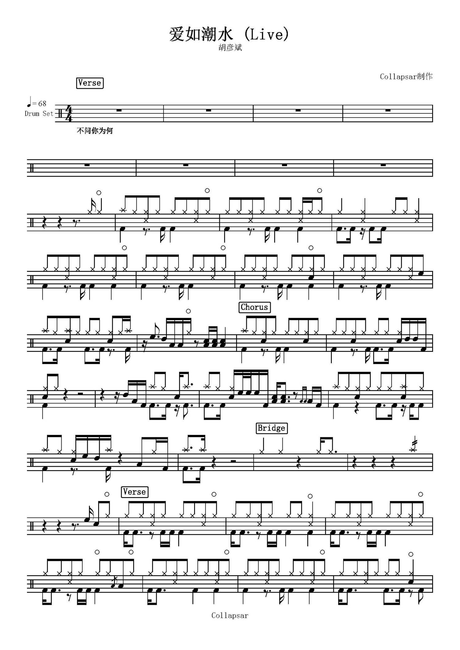 • 爱如潮水鼓谱 - 胡彦斌 - 架子鼓谱第1张
