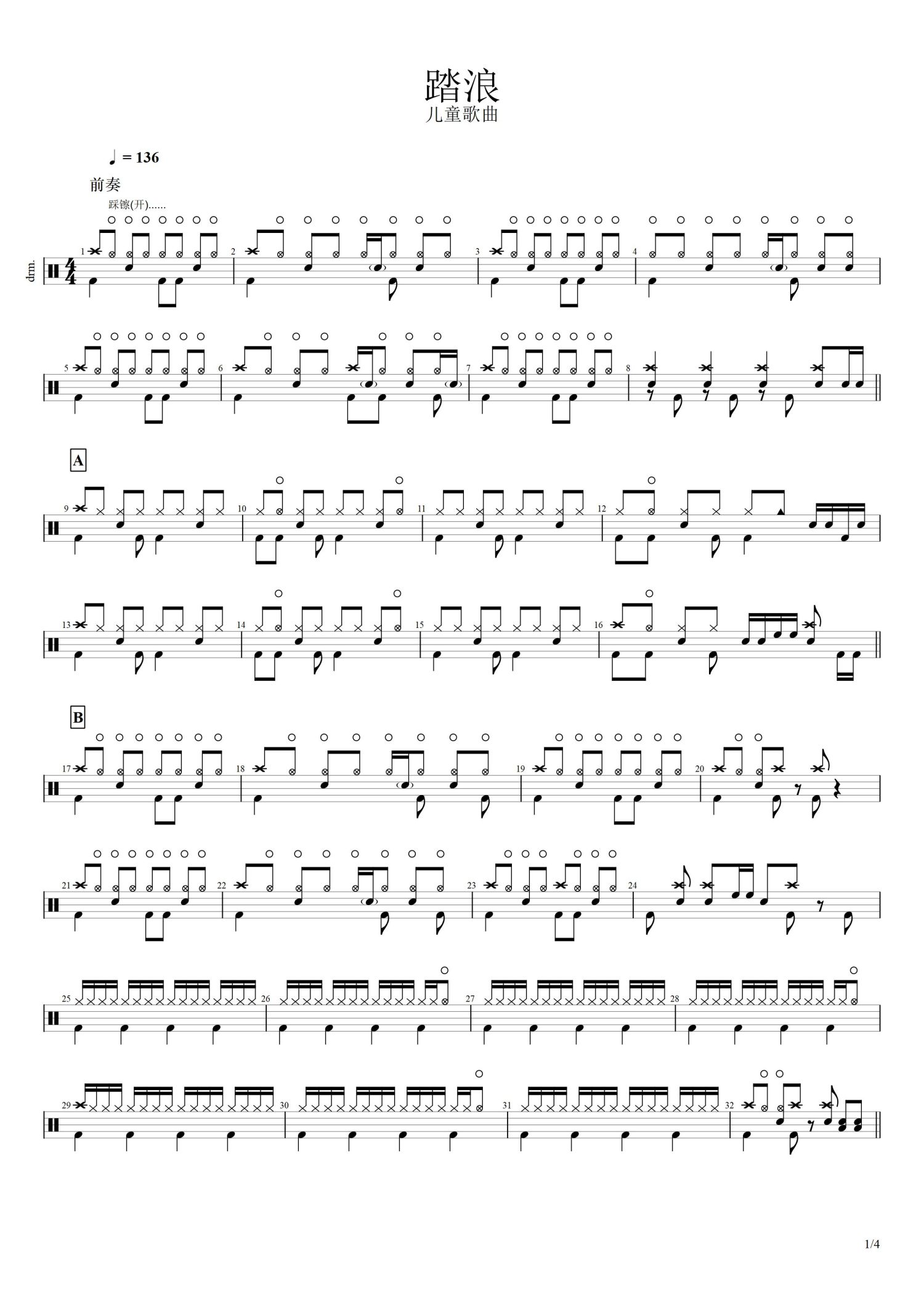 • 踏浪鼓谱 - 徐怀钰 - 架子鼓谱第1张