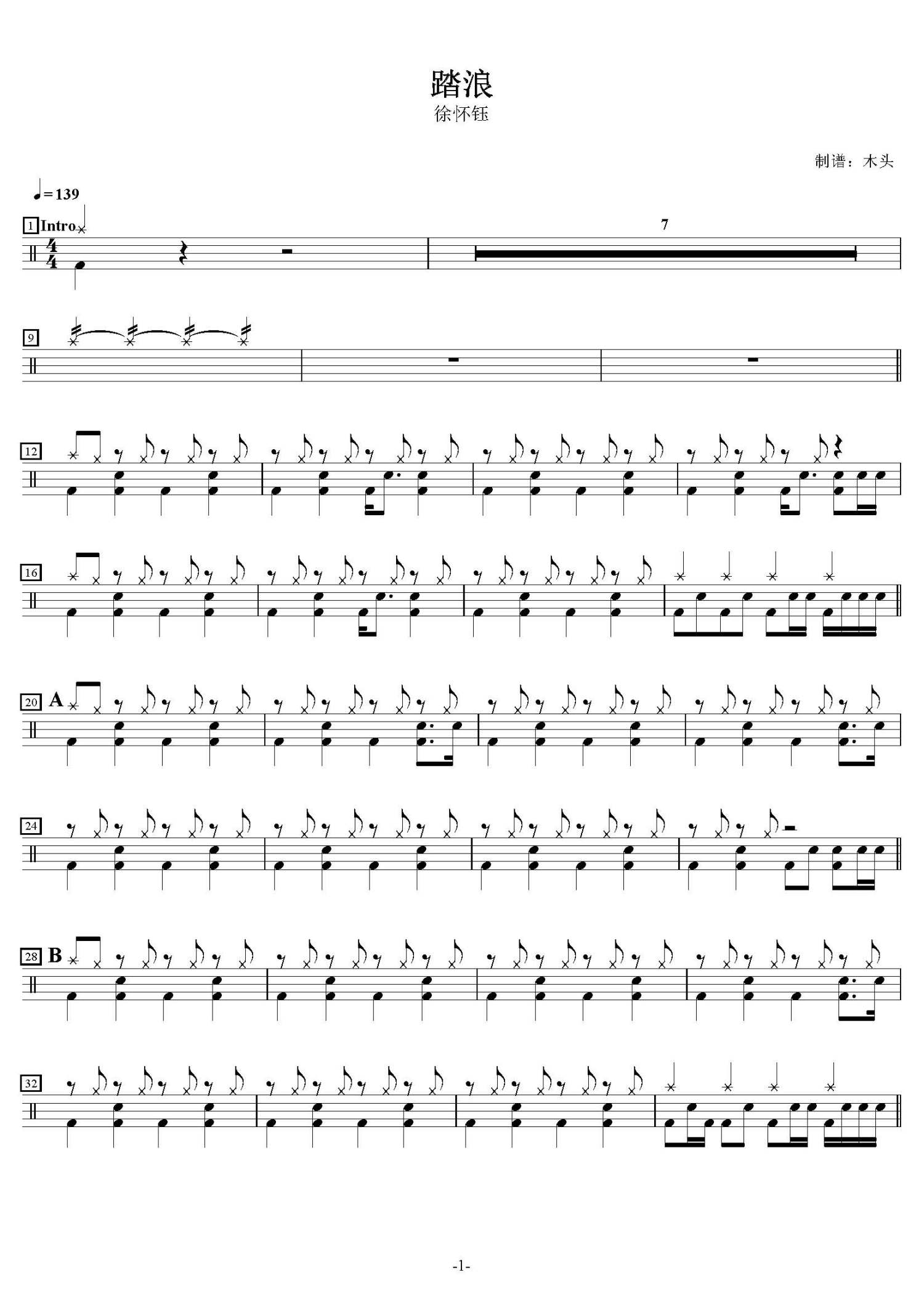 • 踏浪鼓谱 - 徐怀钰 - 架子鼓谱第1张