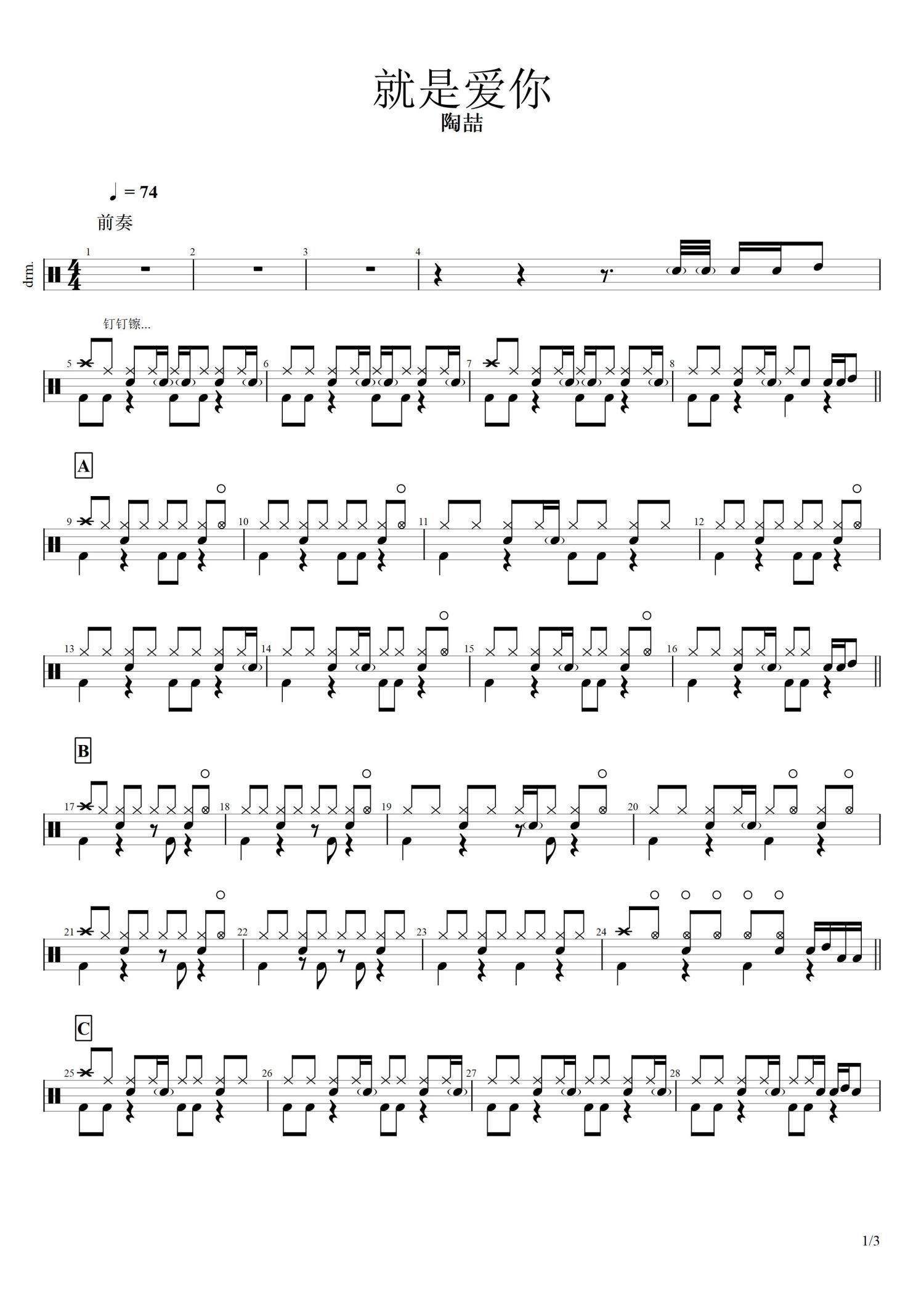 • 就是爱你鼓谱 - 陶喆 - 架子鼓谱第1张