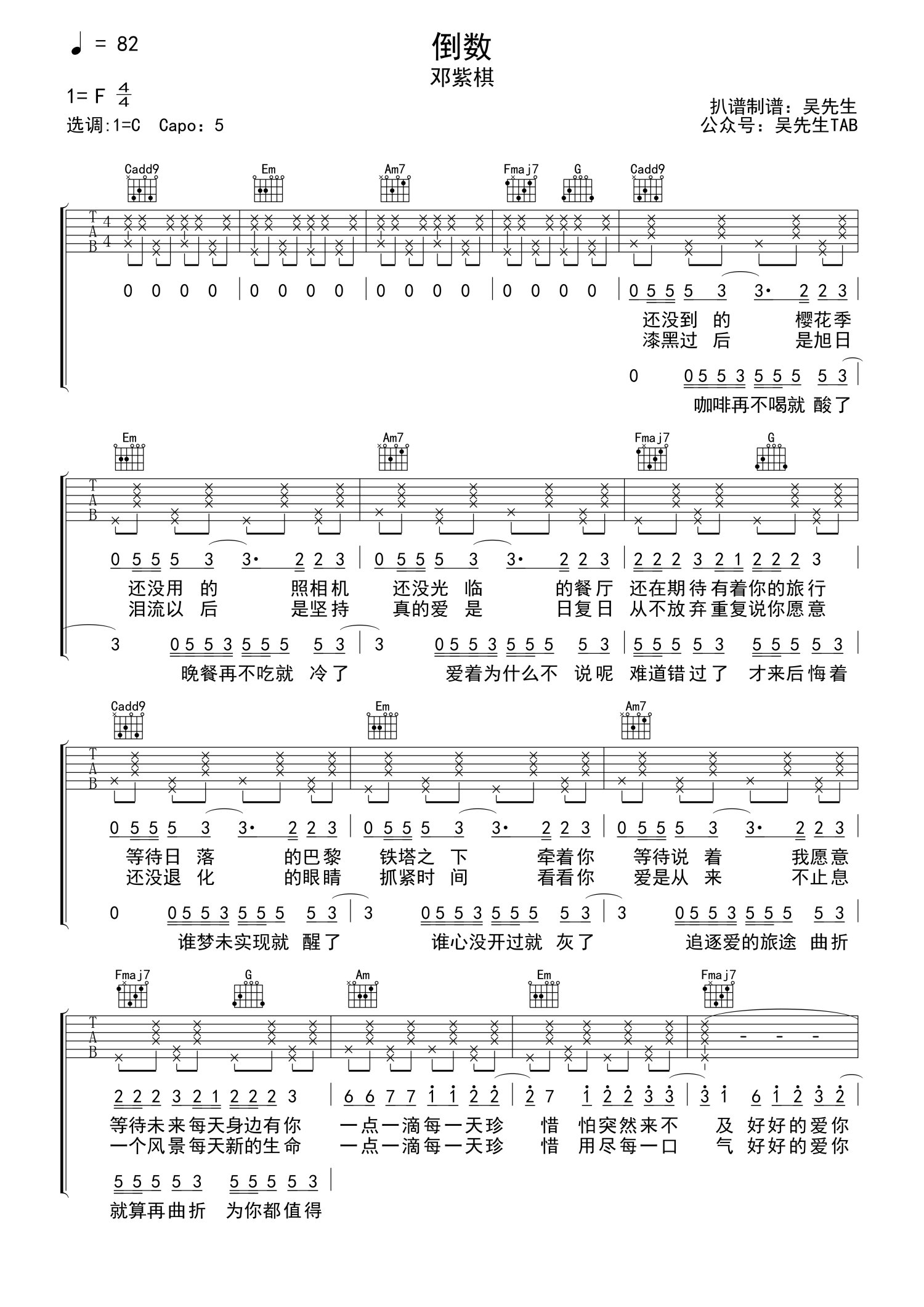• 倒数吉他谱 - 邓紫棋 - C调吉他弹唱谱第1张
