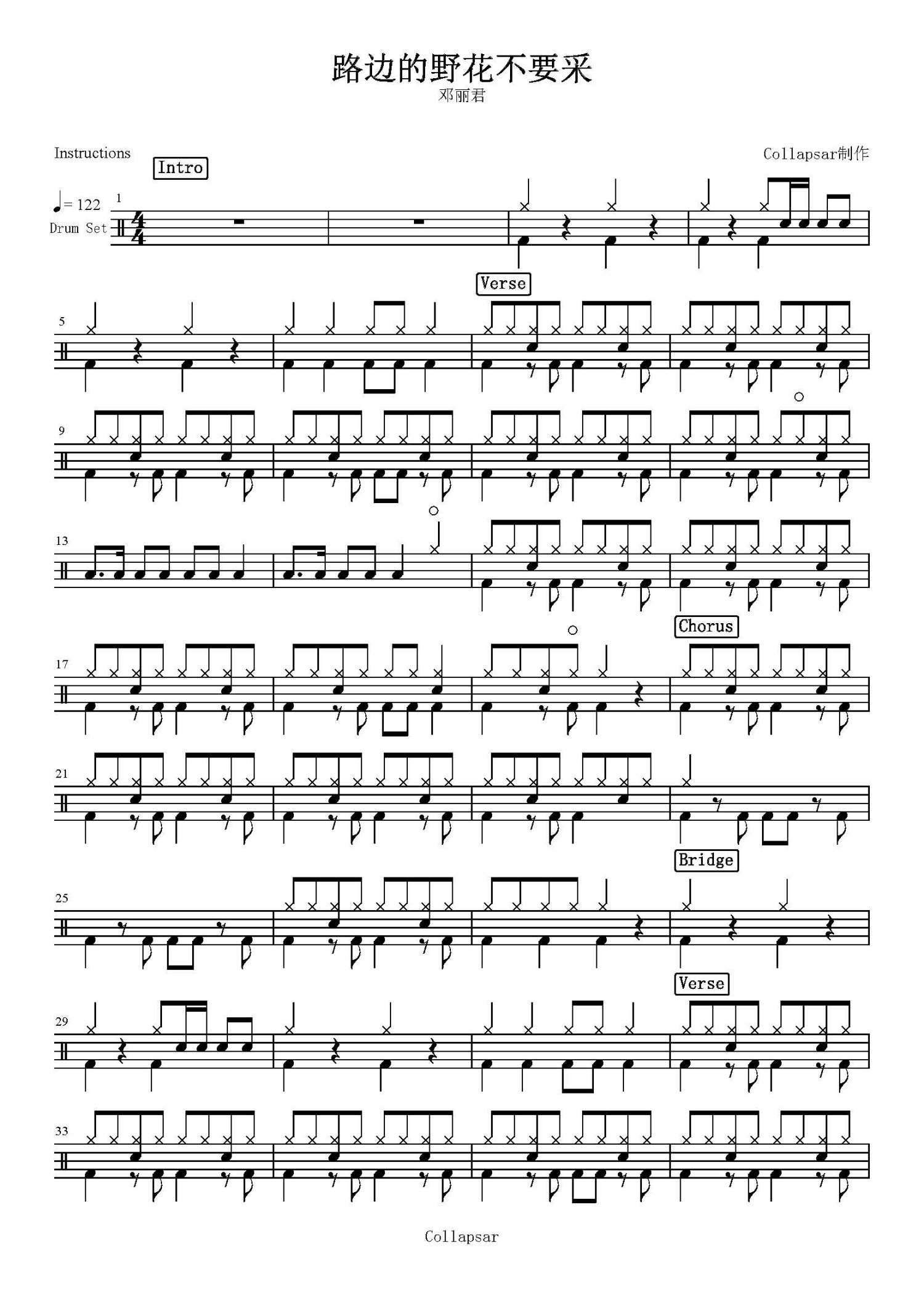 • 路边的野花不要采鼓谱 - 邓丽君 - 架子鼓谱第1张