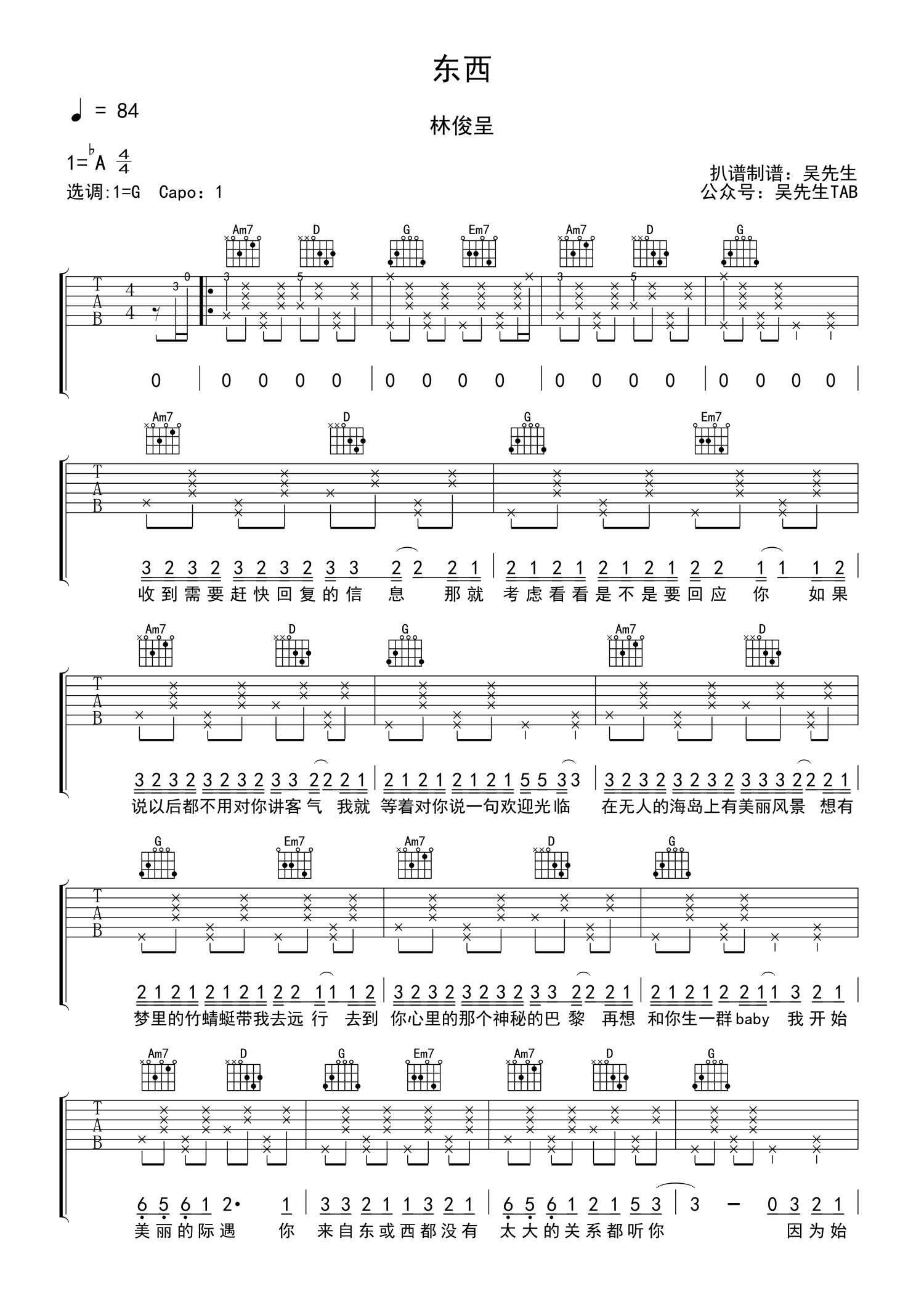 • 东西吉他谱 - 林俊呈 - G调吉他弹唱谱第1张