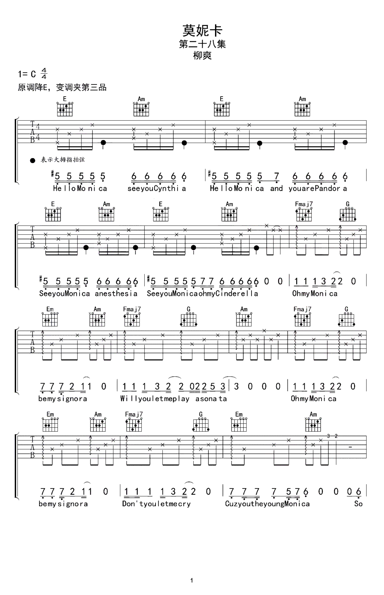 莫妮卡吉他谱 - 柳爽 - C调吉他弹唱谱