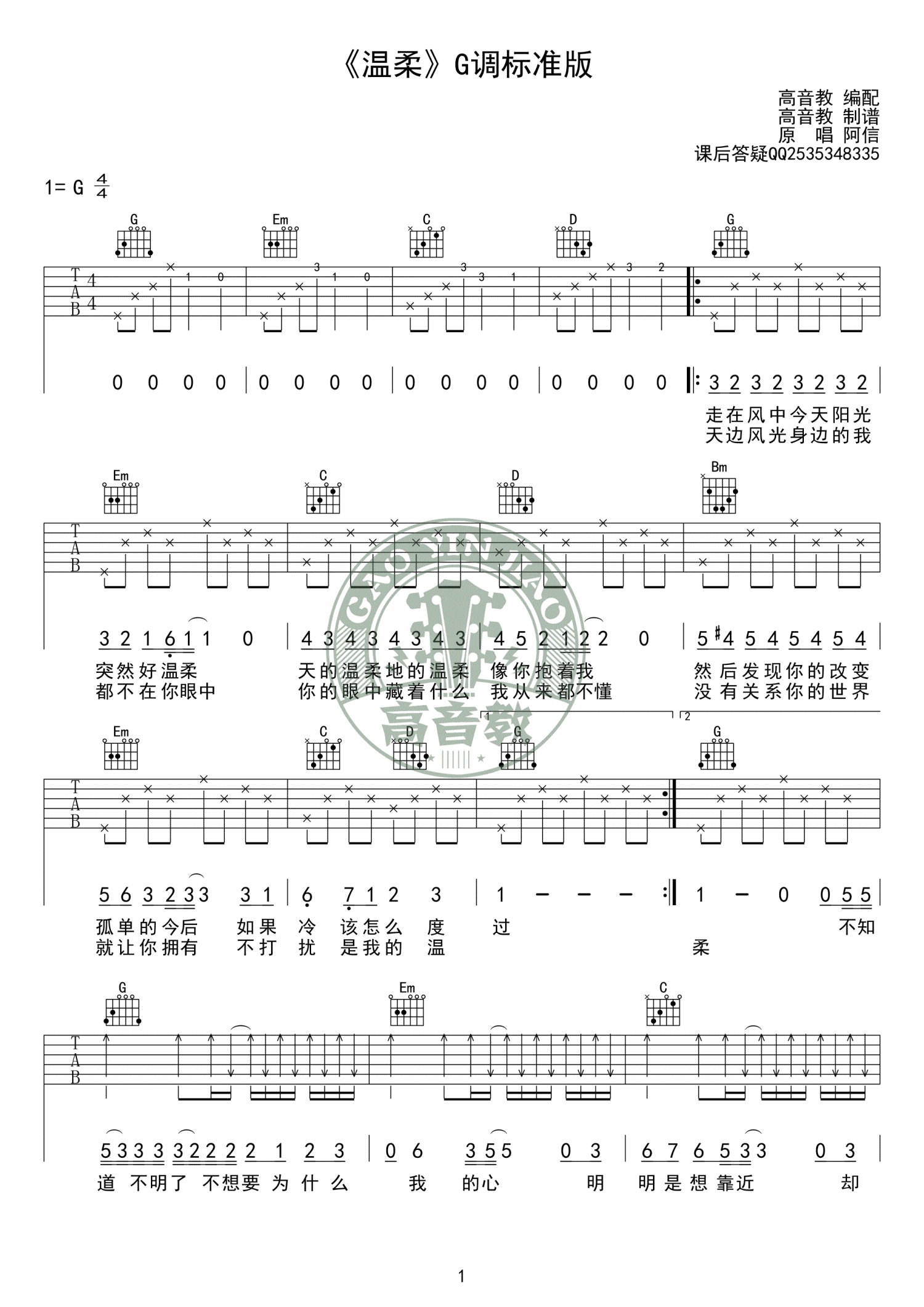 吉他弹唱G调来源:高音教9704 浏览2019-06-04 17:16发布图谱共3页
