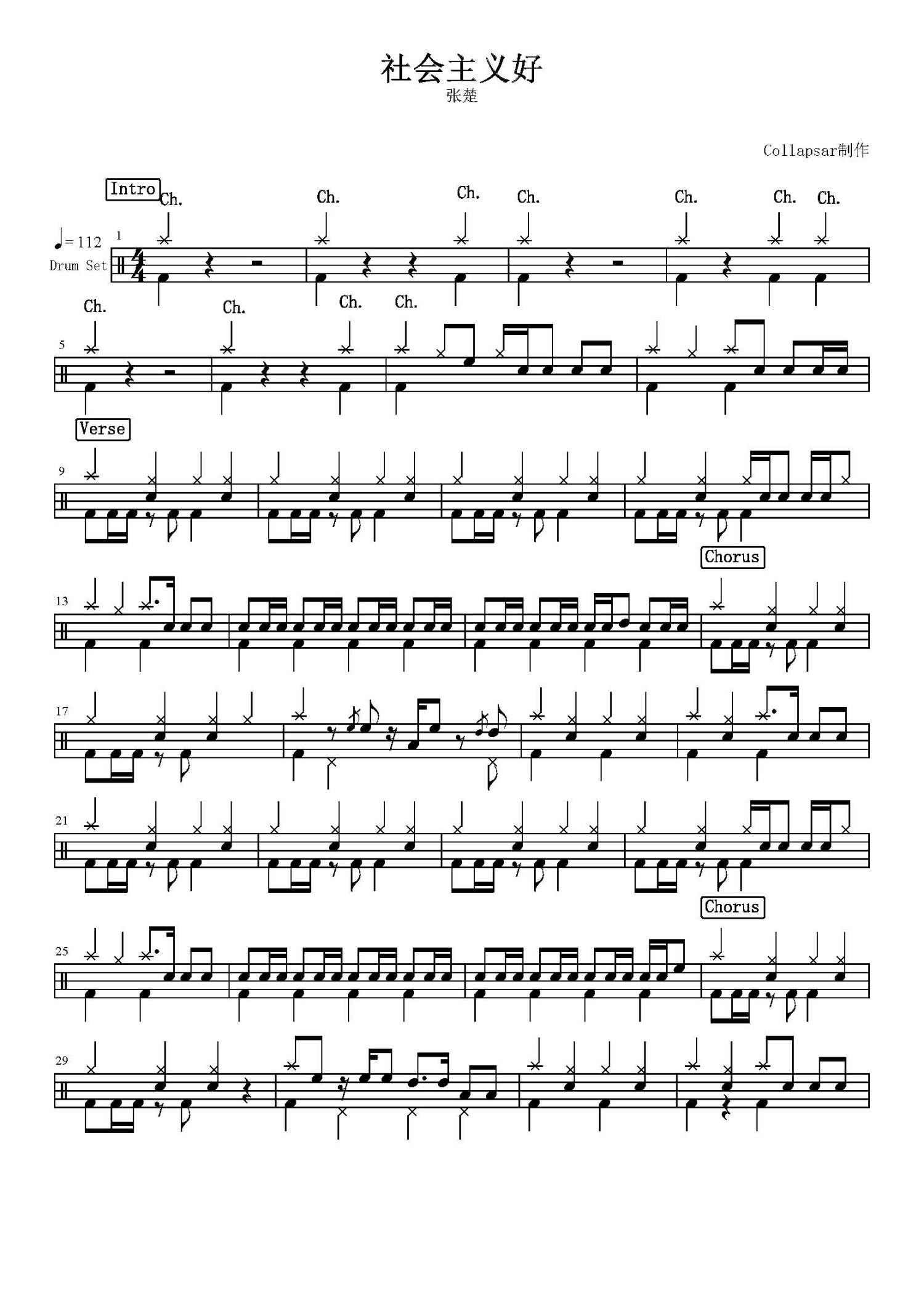 社会主义好鼓谱 - 张楚 - 架子鼓谱