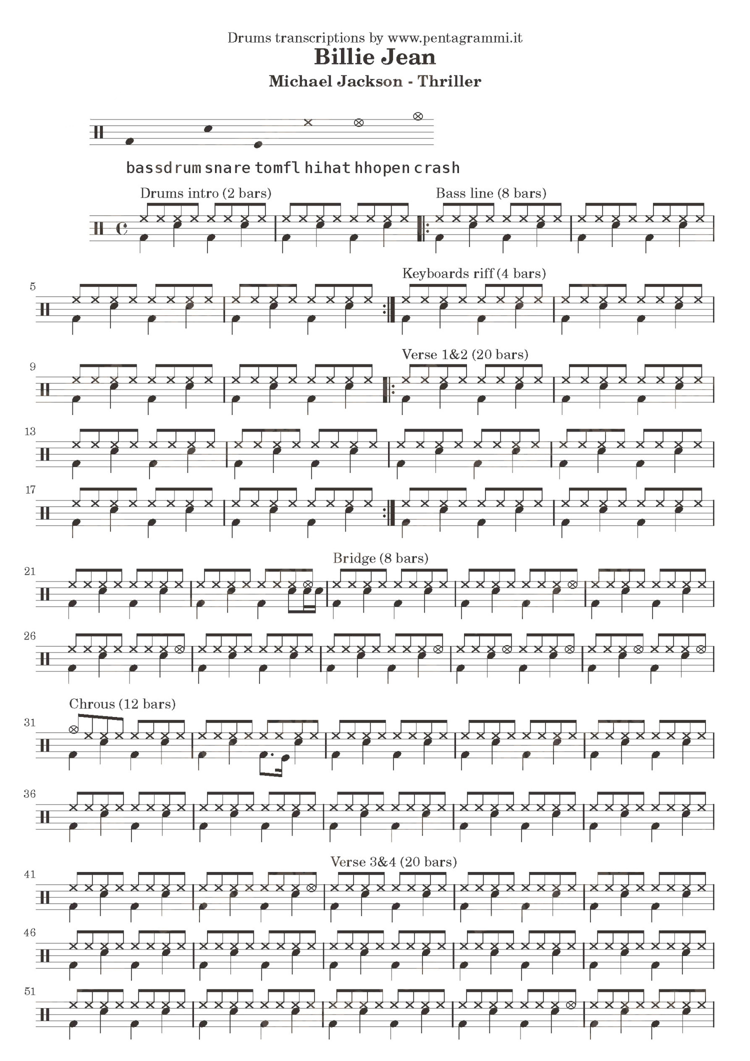 • Billie Jean鼓谱 - Michael Jackson - 架子鼓谱第1张