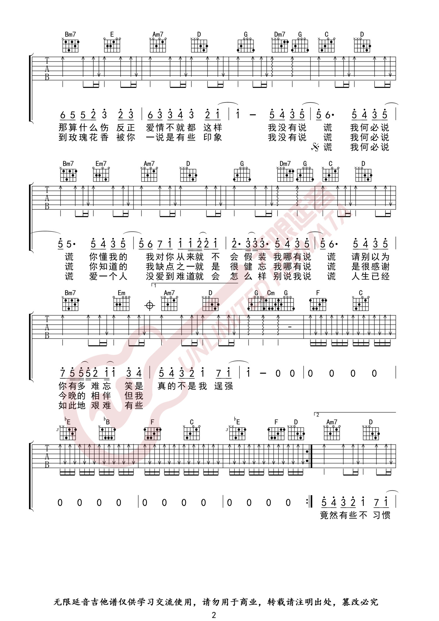 当前位置:琴谱网>吉他弹唱>说谎