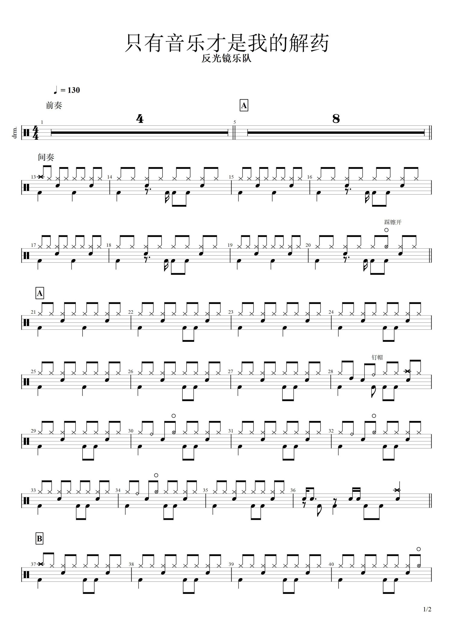 • 只有音乐才是我的解药鼓谱 - 反光镜乐队 - 架子鼓谱第1张