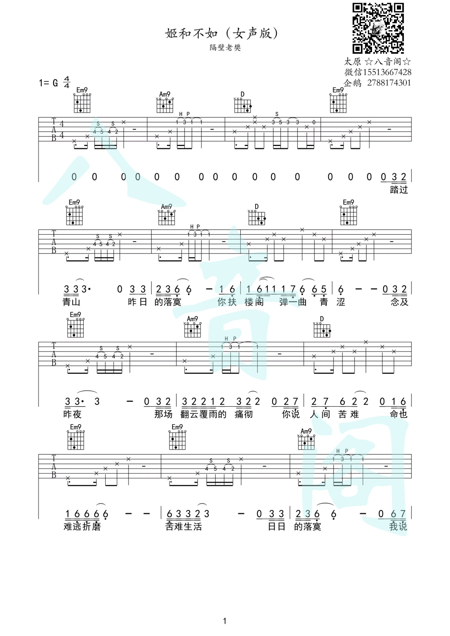 姬和不如吉他谱 - 隔壁老樊 - 吉他弹唱谱 - 女生版