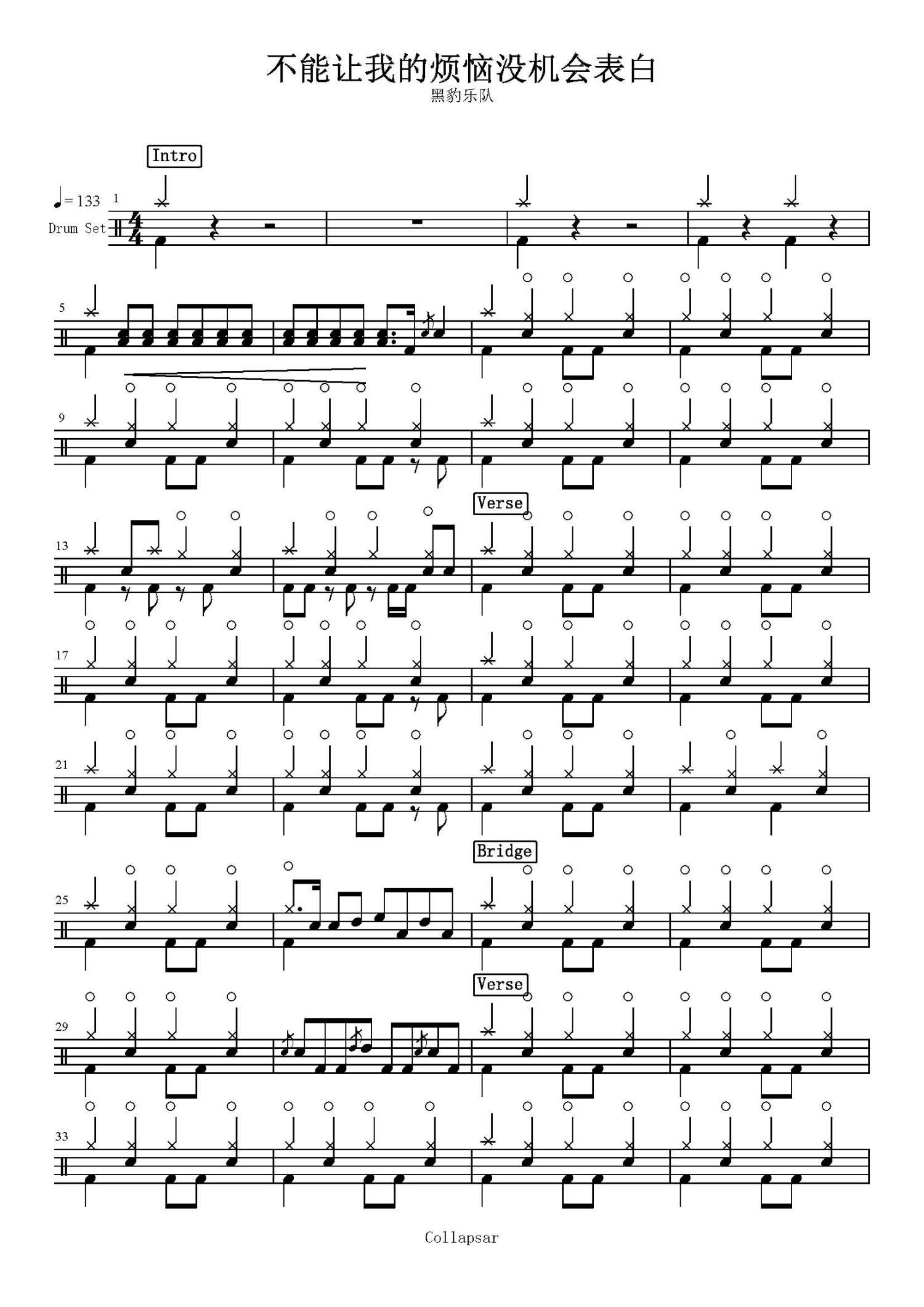 • 不能让我的烦恼没机会表白鼓谱 - 黑豹乐队 - 架子鼓谱第1张