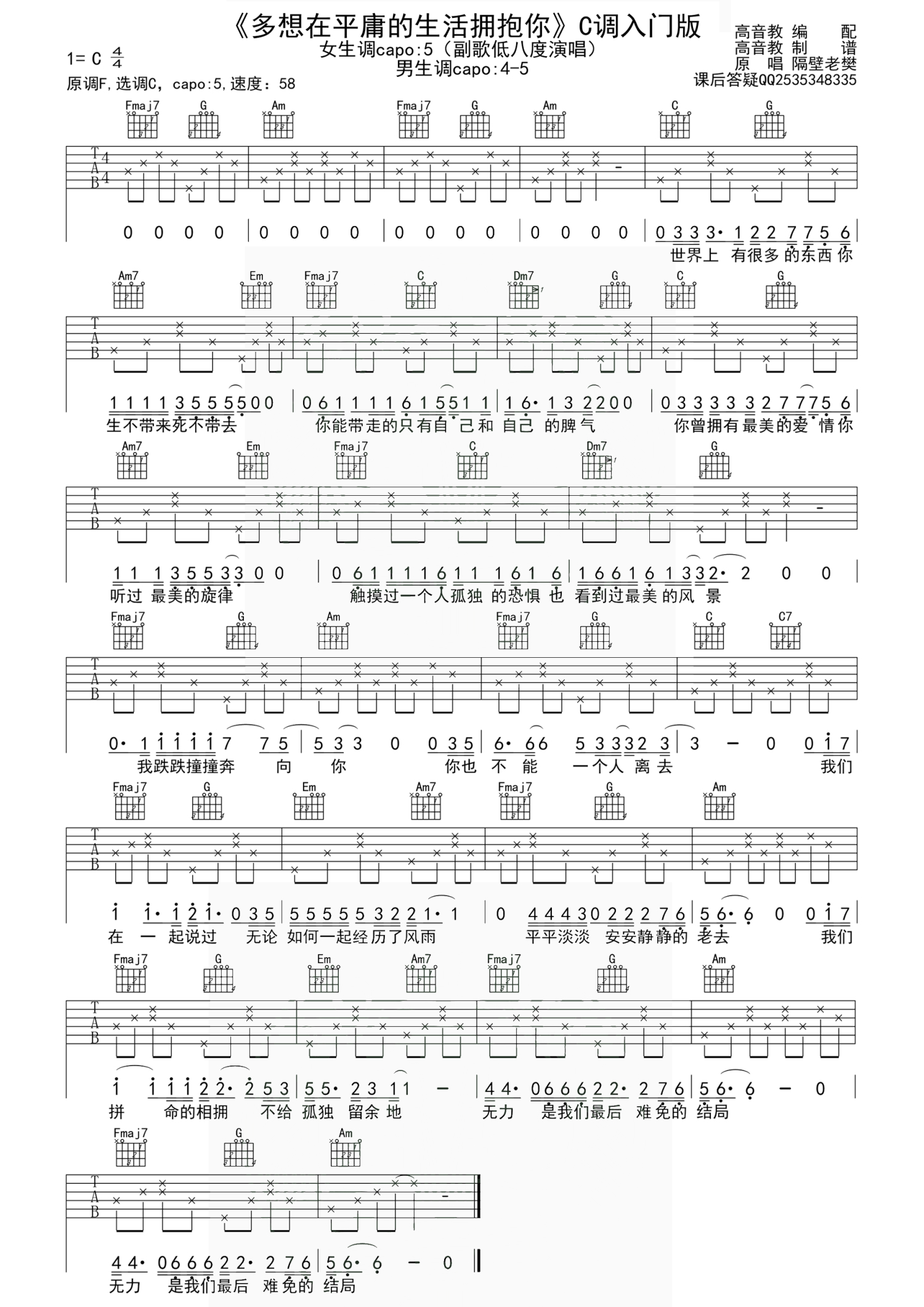 吉他弹唱C调来源:高音教2101 浏览2019-06-04 17:16发布图谱共1页