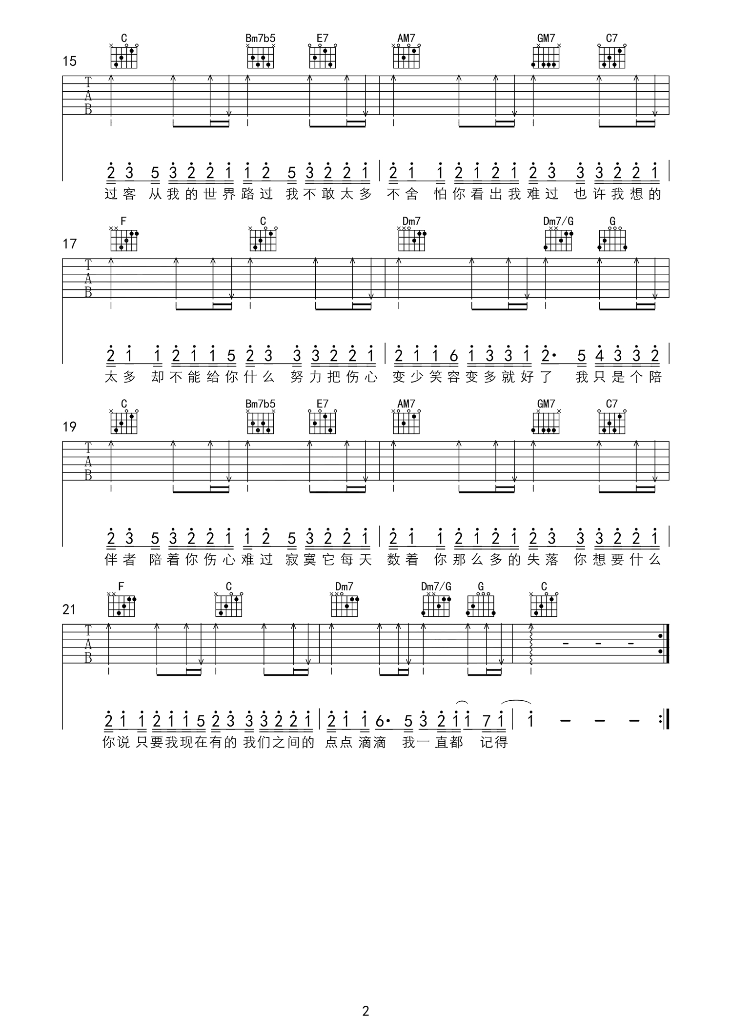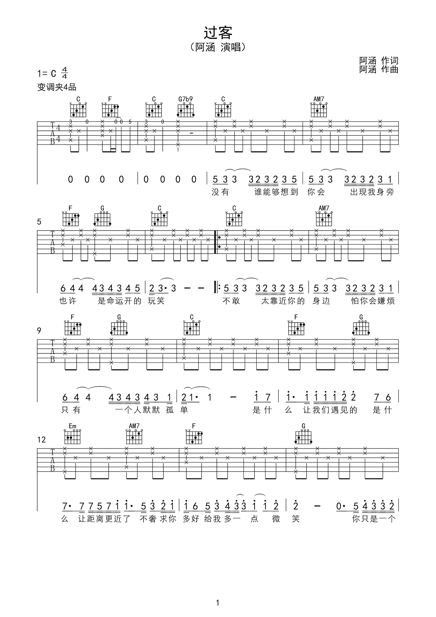 过客吉他谱 - 阿涵 - C调吉他弹唱谱