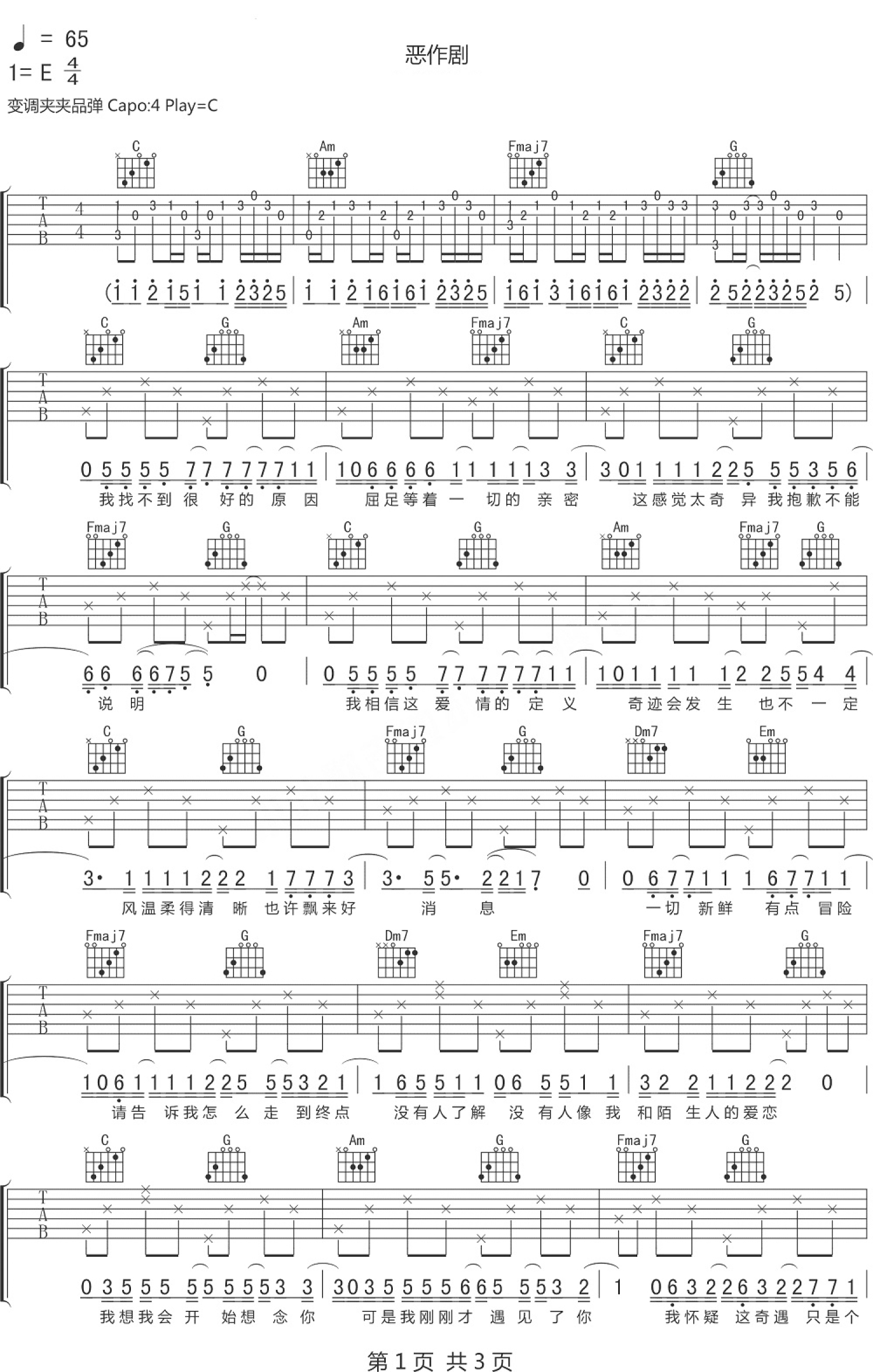 当前位置:琴谱网>吉他弹唱>恶作剧