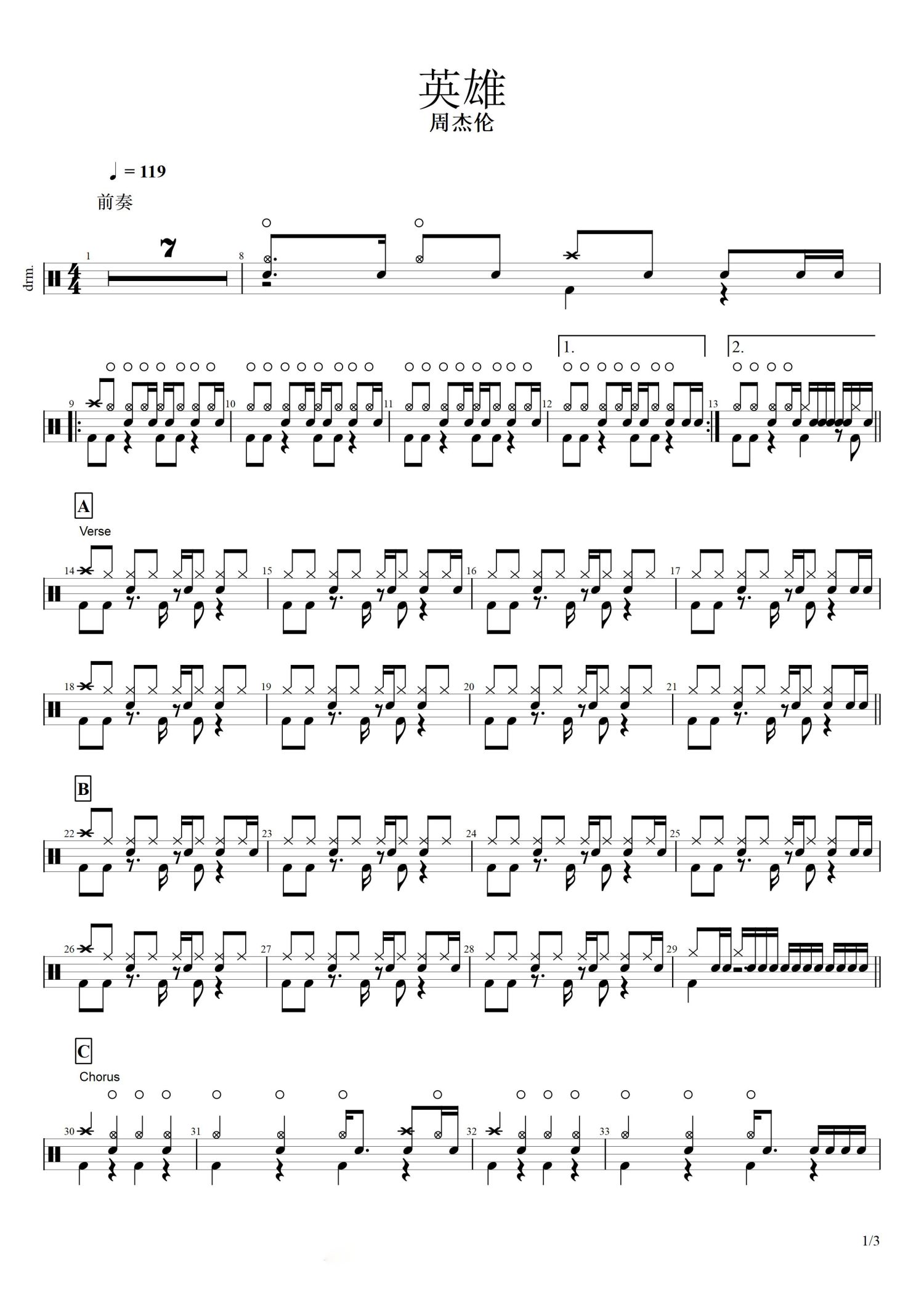 • 英雄鼓谱 - 周杰伦 - 架子鼓谱第1张
