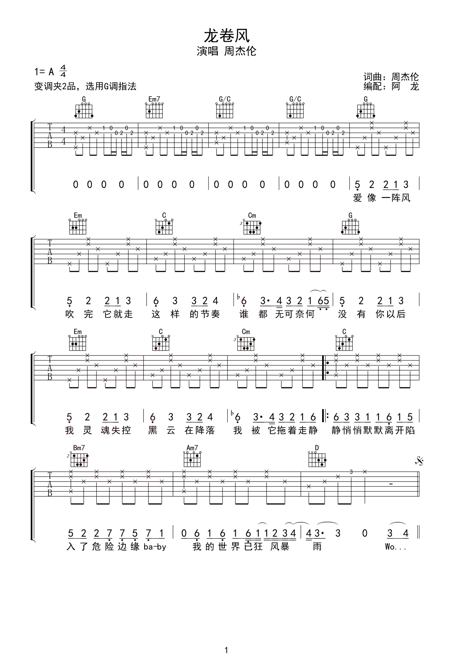 龙卷风吉他谱 - 周杰伦 - G调吉他弹唱谱