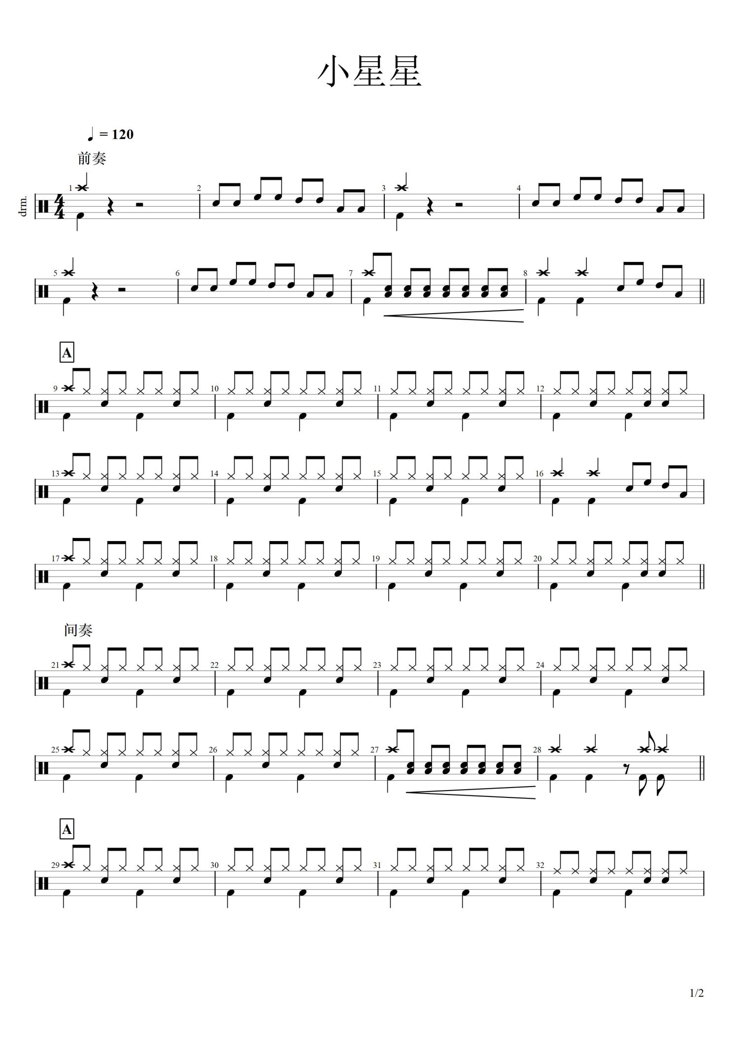 • 小星星鼓谱 - 摇滚版 - 架子鼓谱第1张