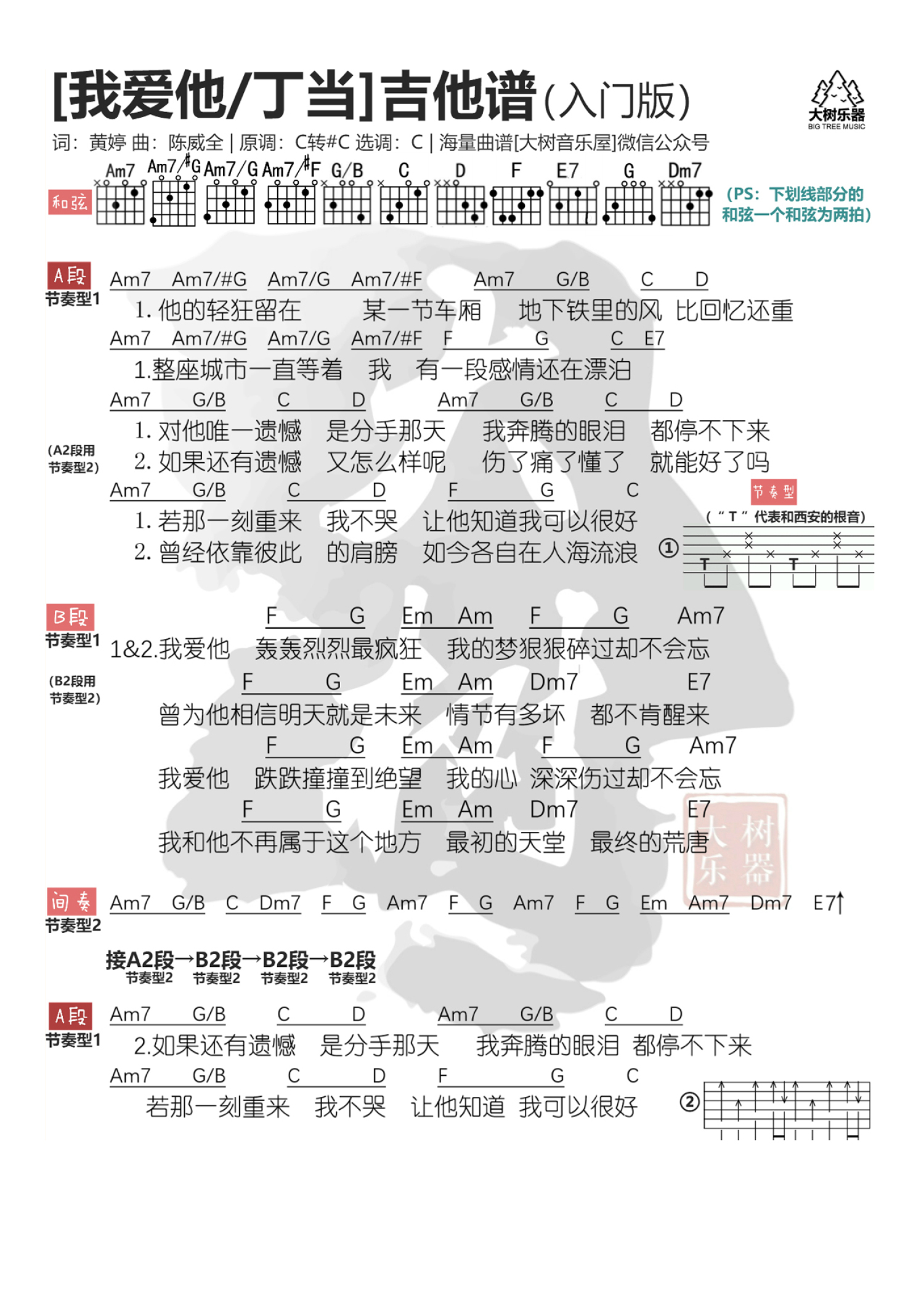 我爱他吉他谱 - 丁当 - C调吉他弹唱谱