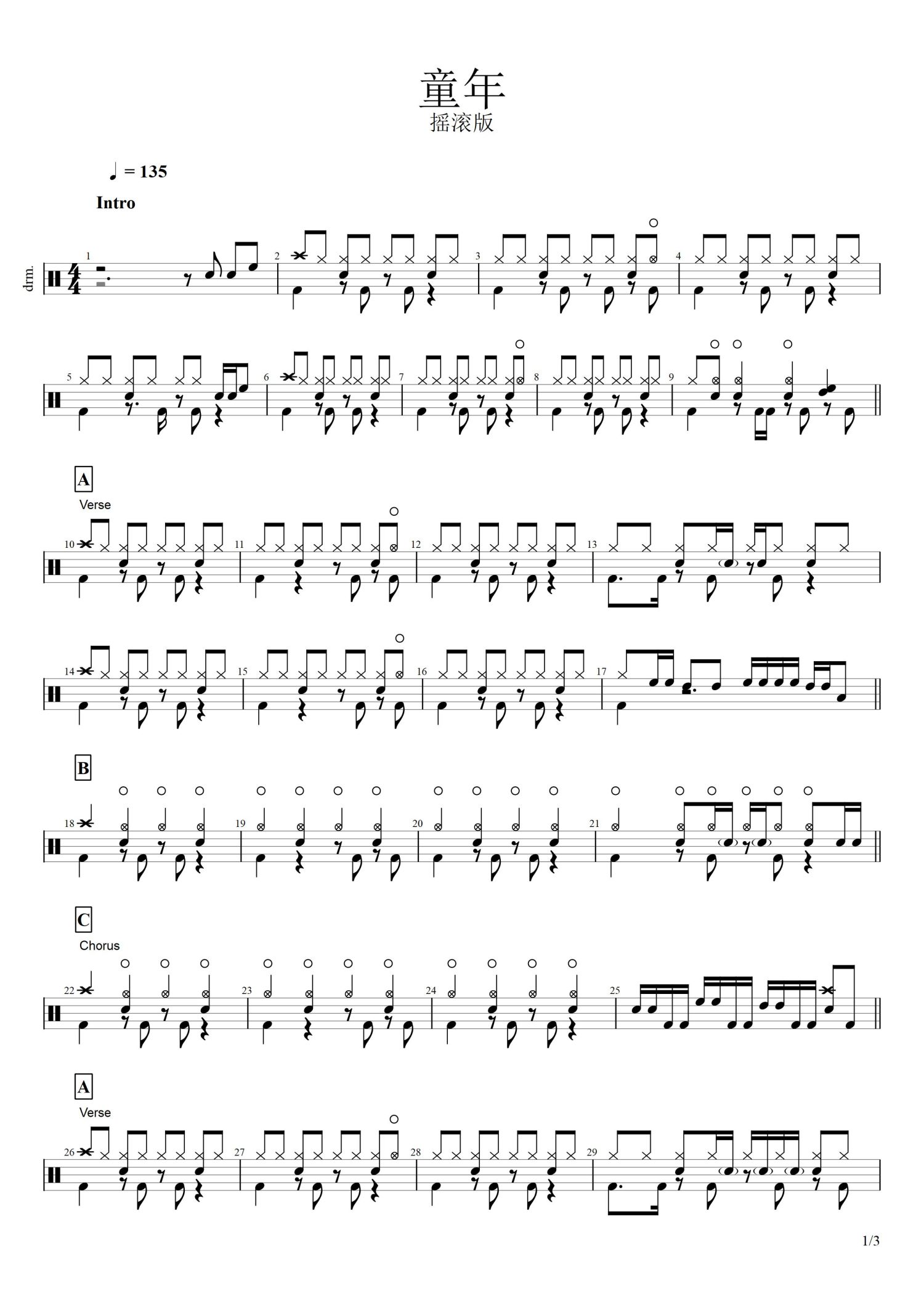 • 童年鼓谱 - 罗大佑 - 架子鼓谱第1张